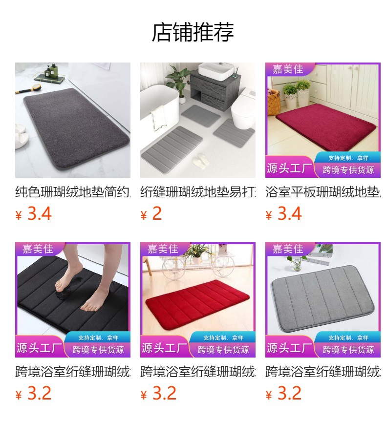크로스보더 퀼팅 코랄벨벳 바닥매트 단색 U자형 변기 미끄럼 방지 매트 가정용 관리가 쉬운 욕실 바닥매트스토어 가기