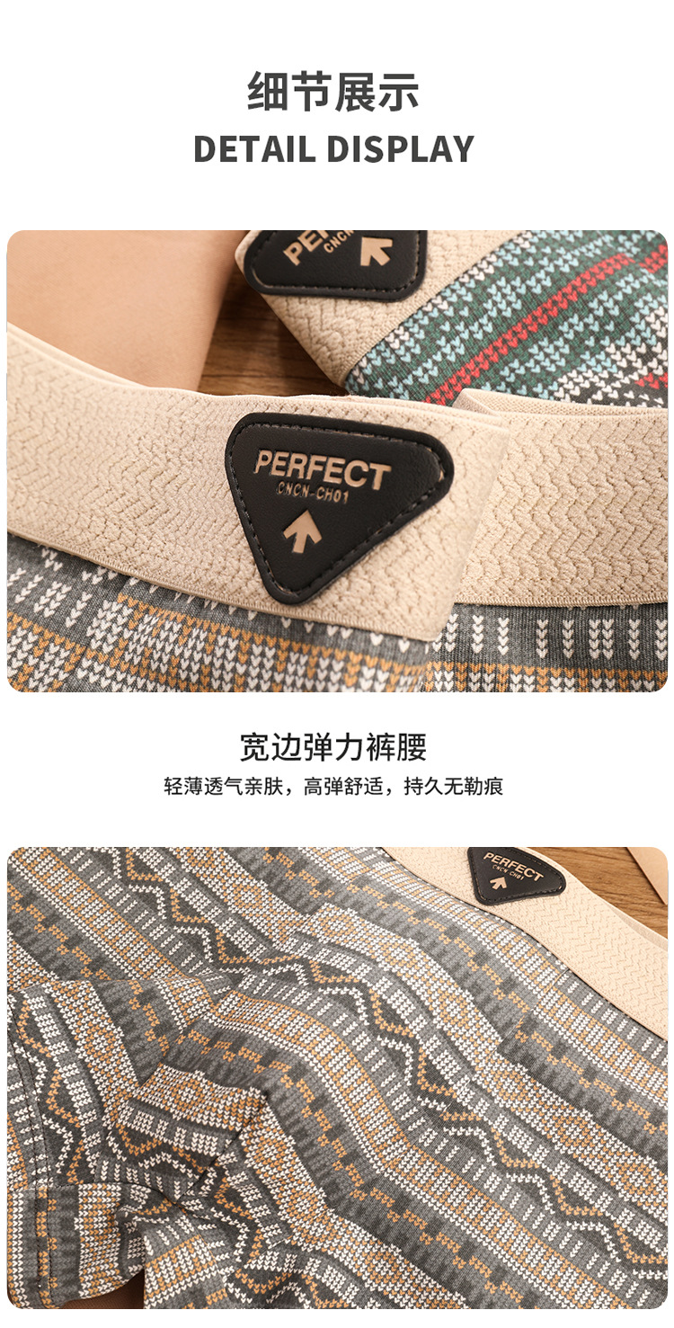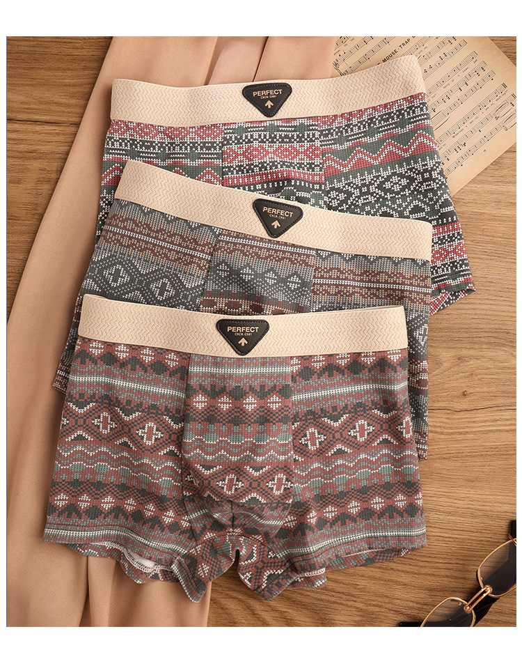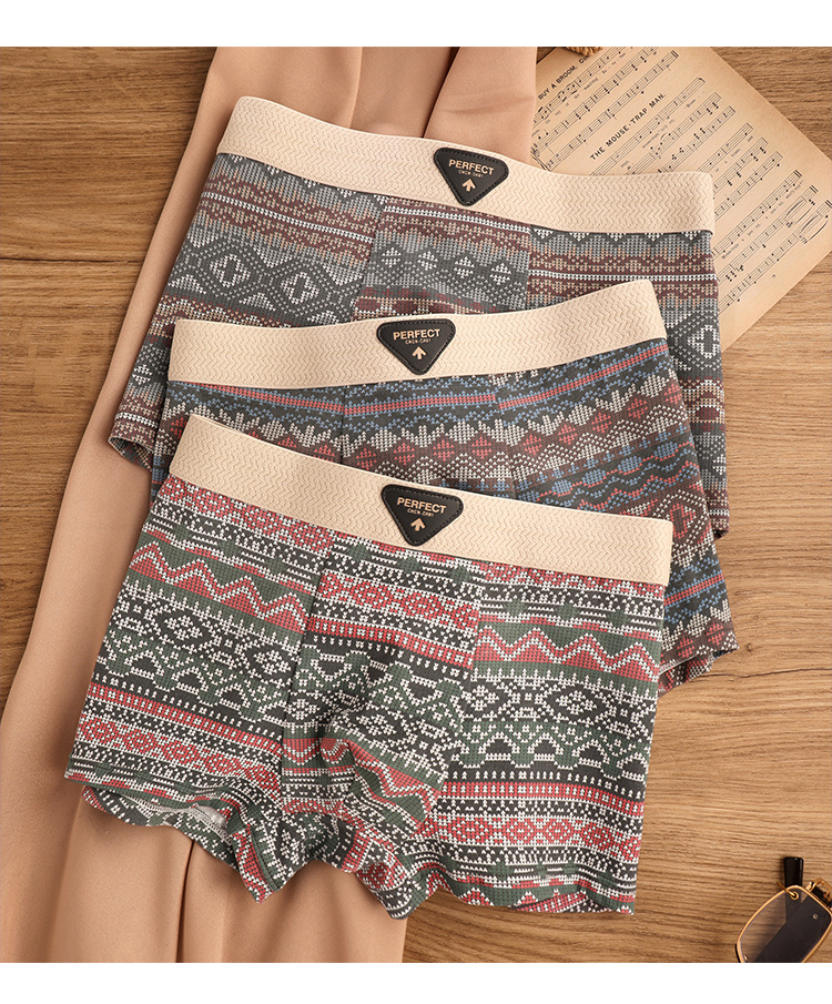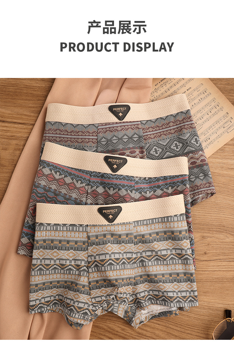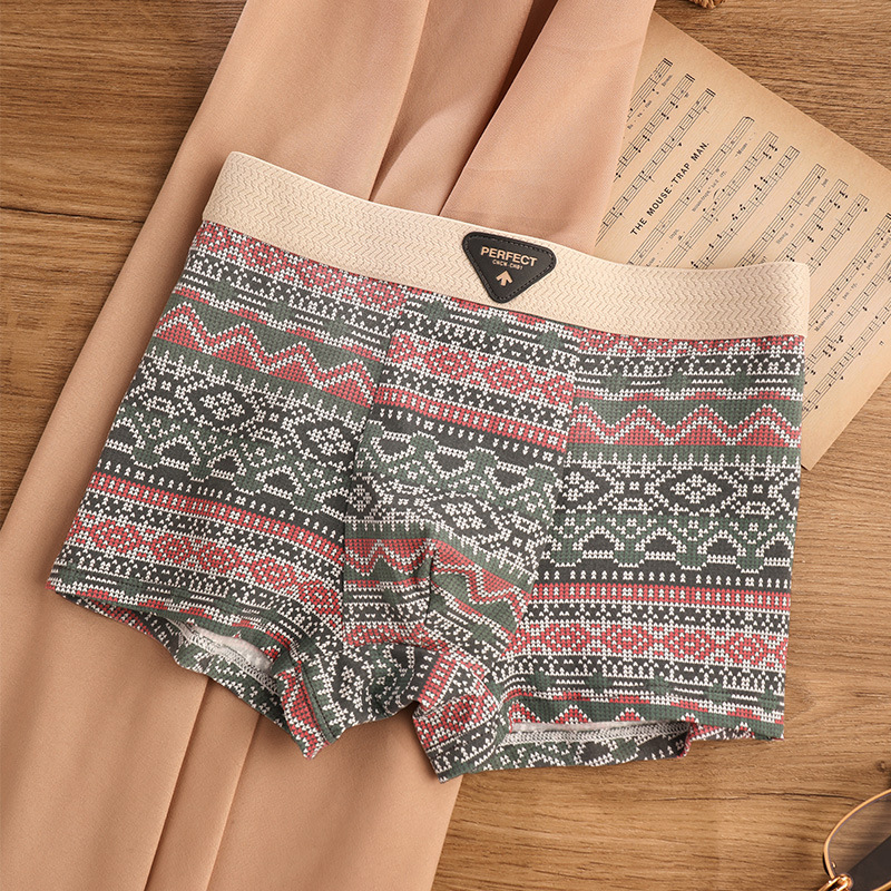 2025 새로운 남성 복고풍 민족 인쇄 면화 얇은 사각형 느슨한 통기성 복서 트렌디 스포츠 속옷