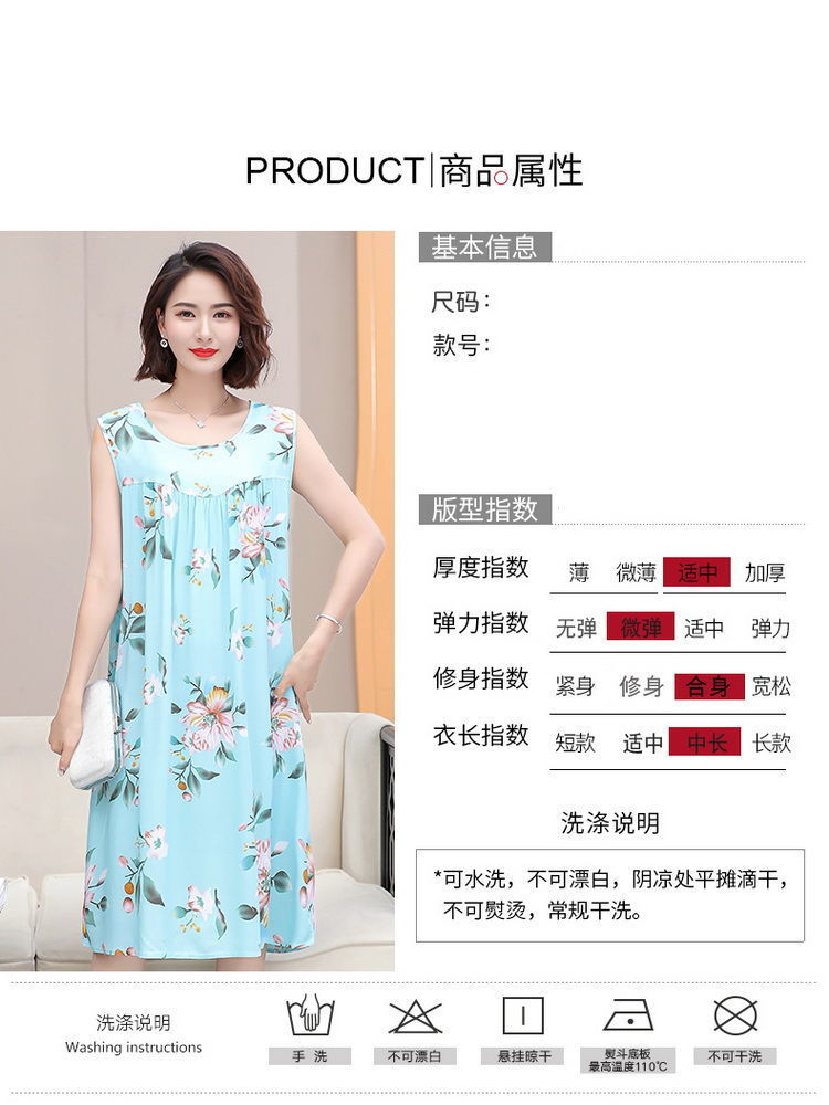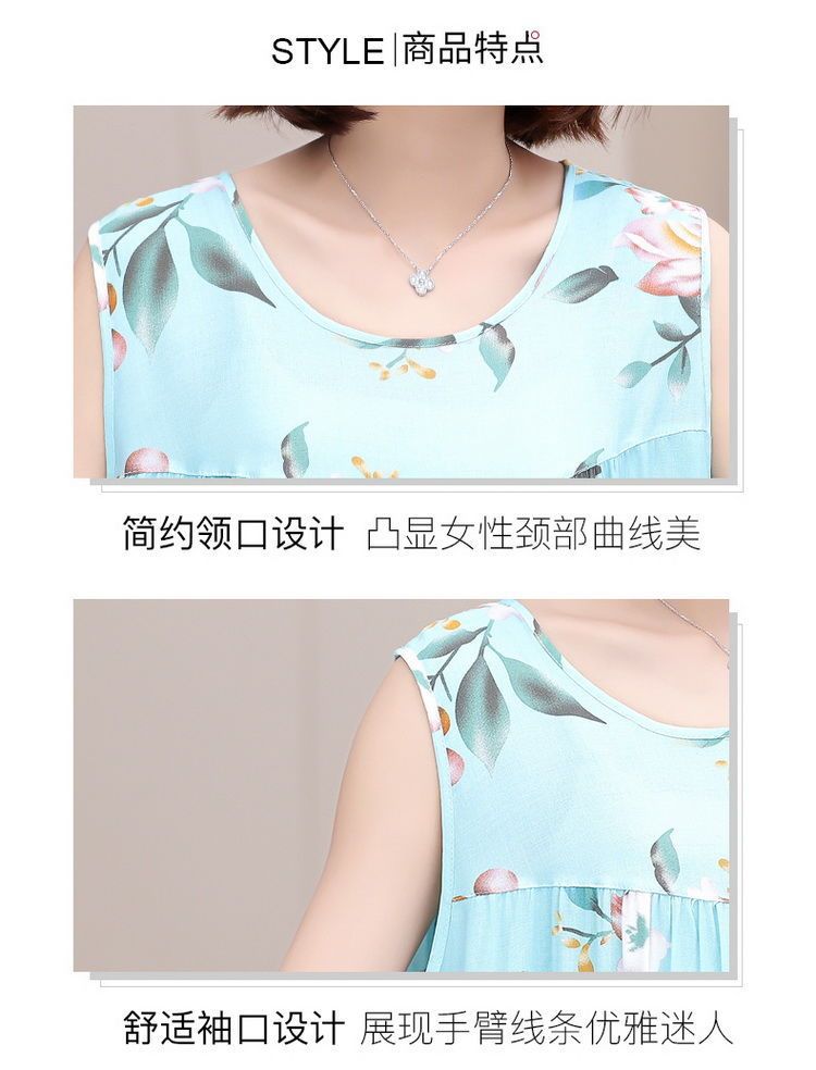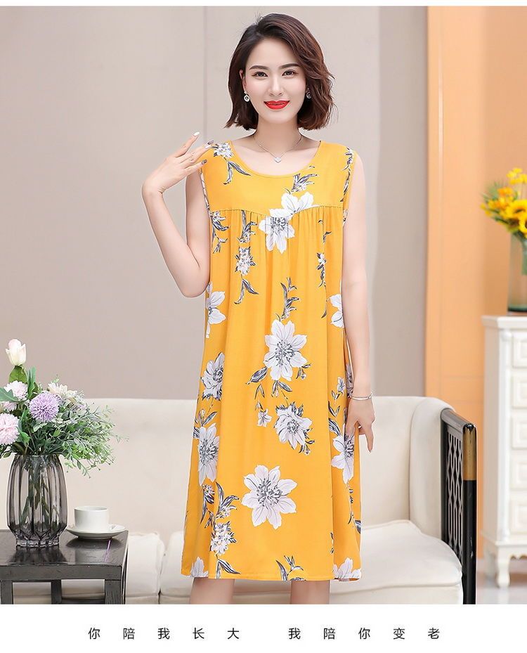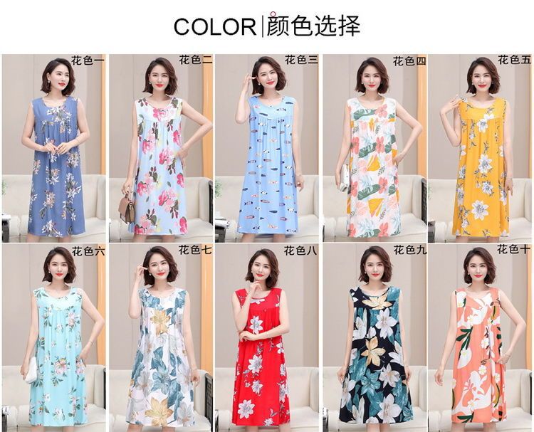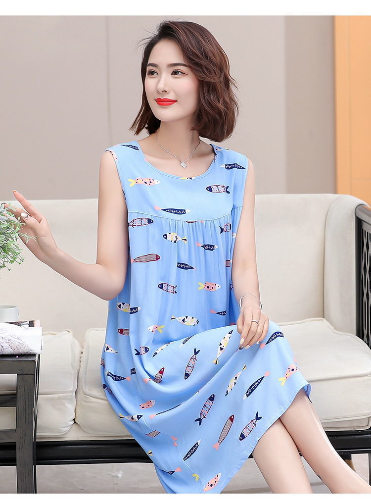 여성을위한 면 실크 잠옷 잠옷 여름 느슨한 대형 중간 길이 스커트 인공 면화 홈웨어 민소매 드레스스토어 가기