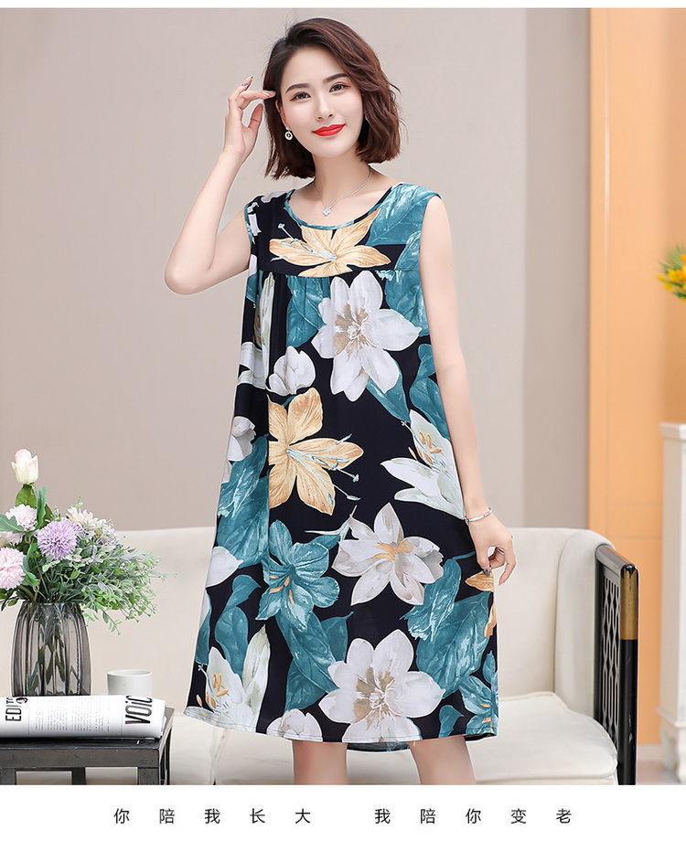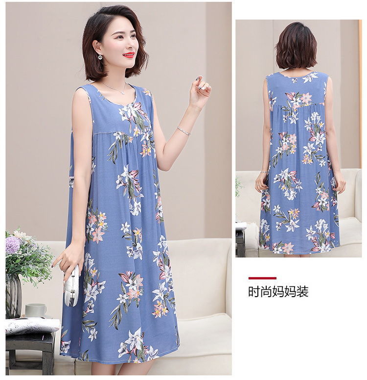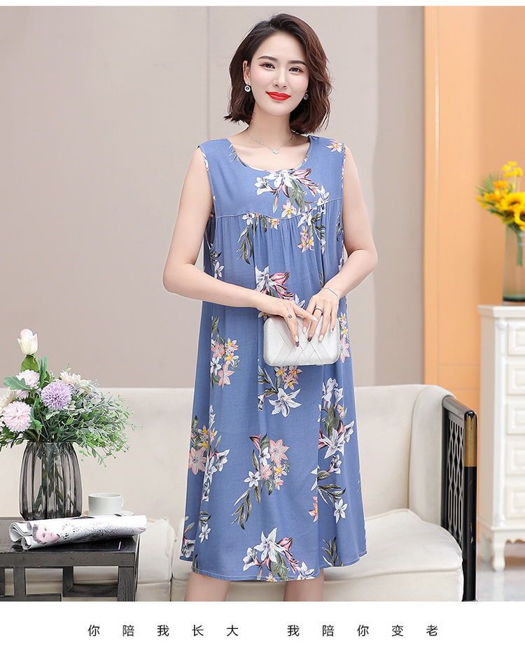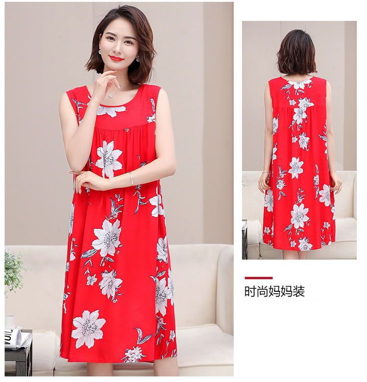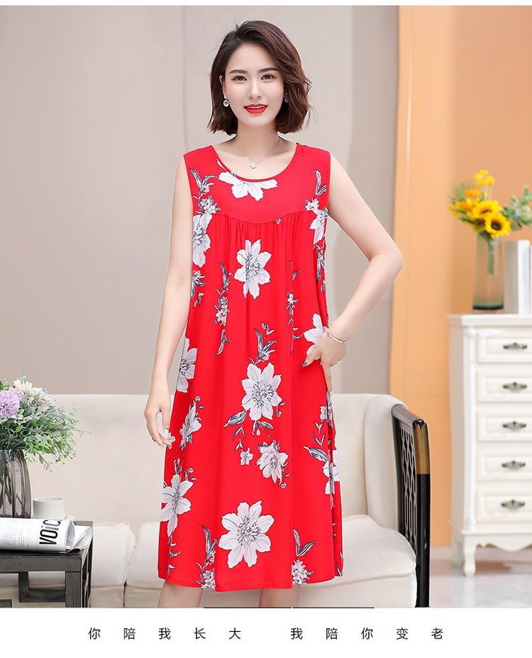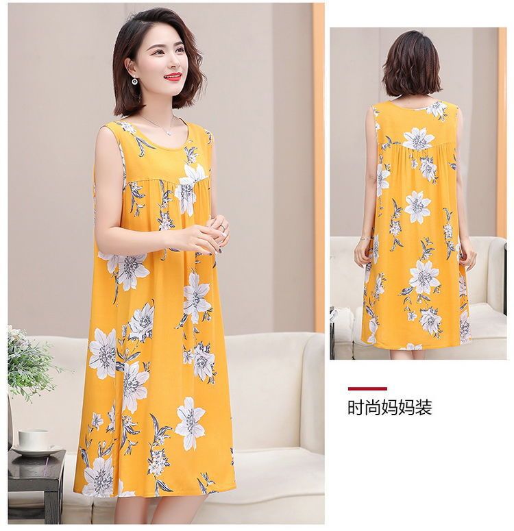 여성을위한 면 실크 잠옷 잠옷 여름 느슨한 대형 중간 길이 스커트 인공 면화 홈웨어 민소매 드레스