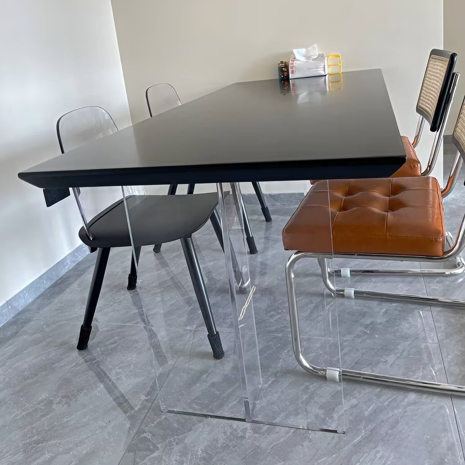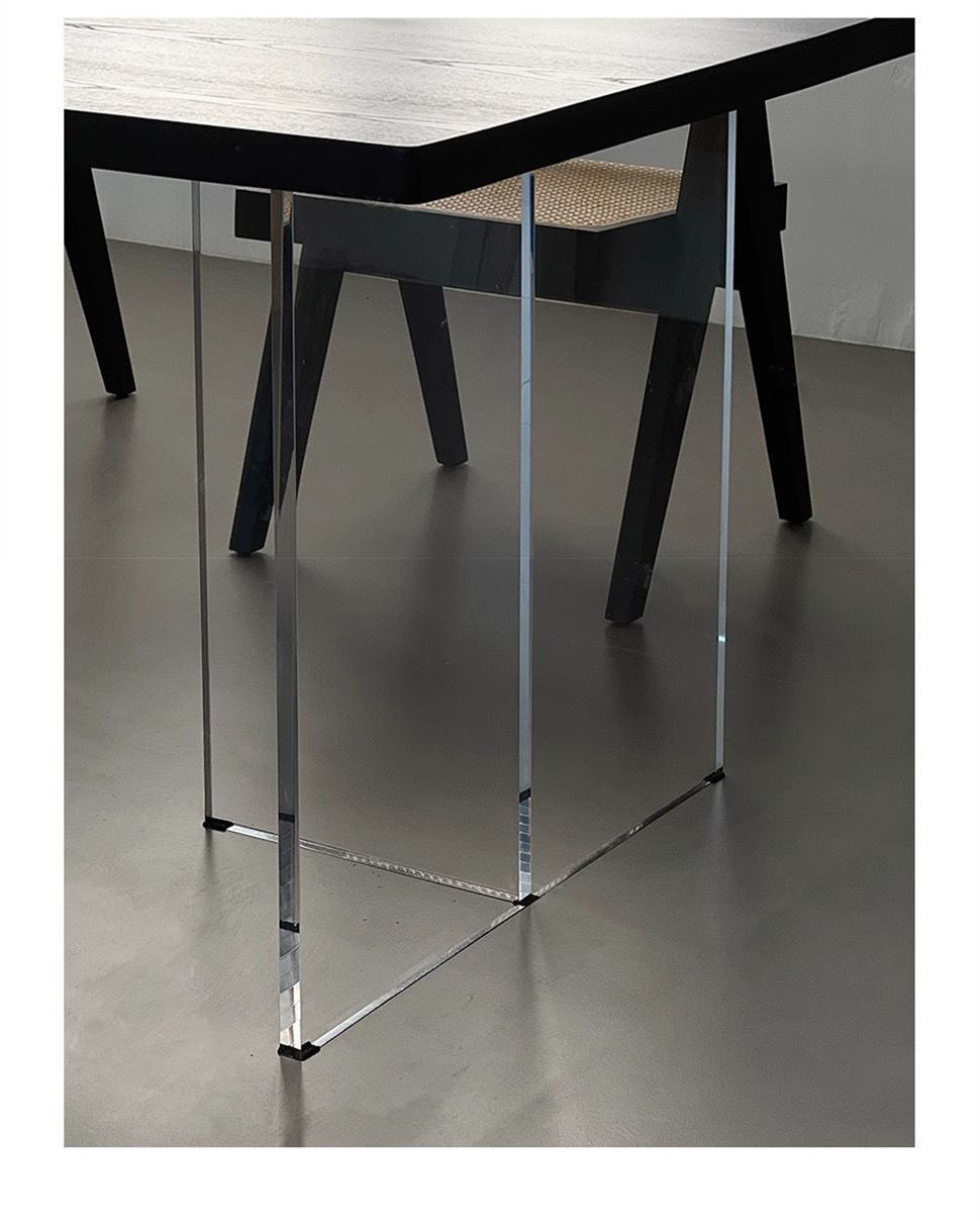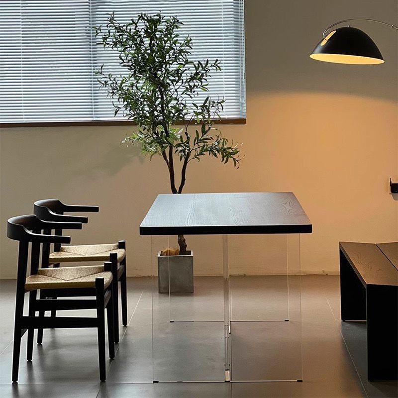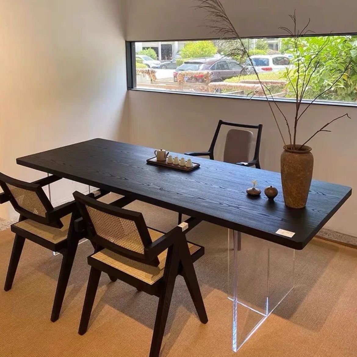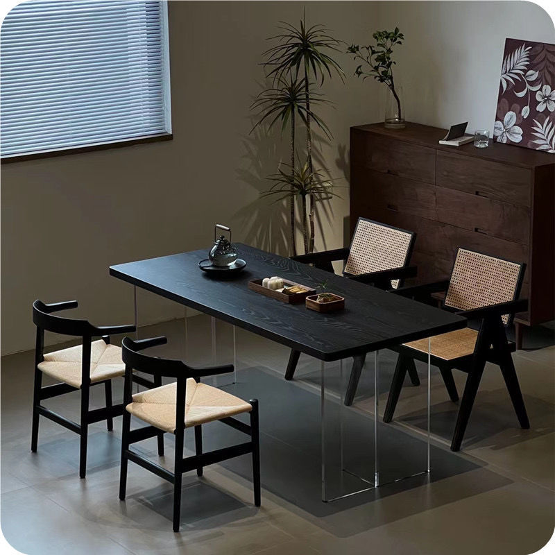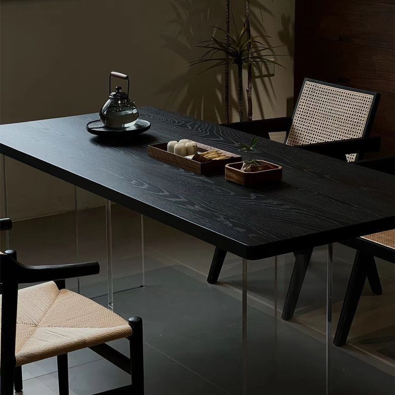 와비사비 스타일 탄화 검은색 원목 식탁 통나무 대형 보드 작업대 미니멀리스트 스타일 아크릴 서스펜션 사무실 티 테이블