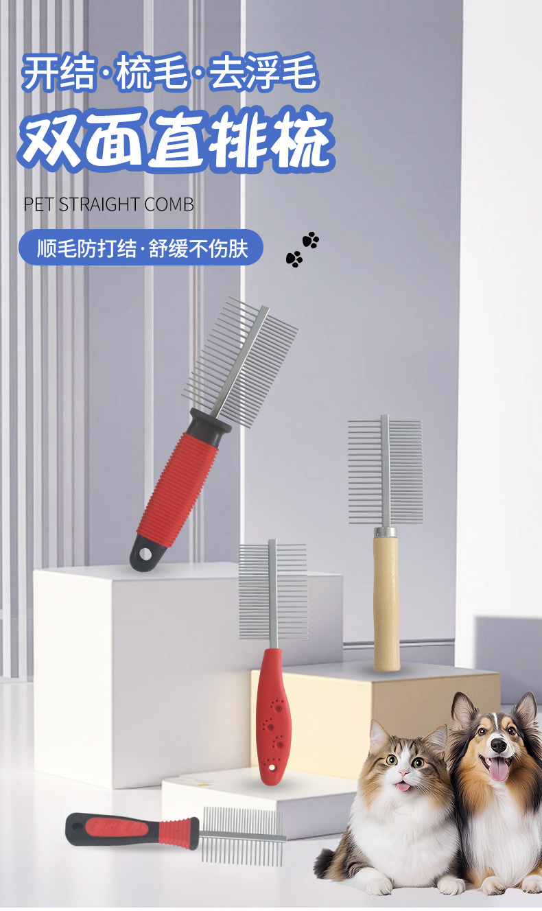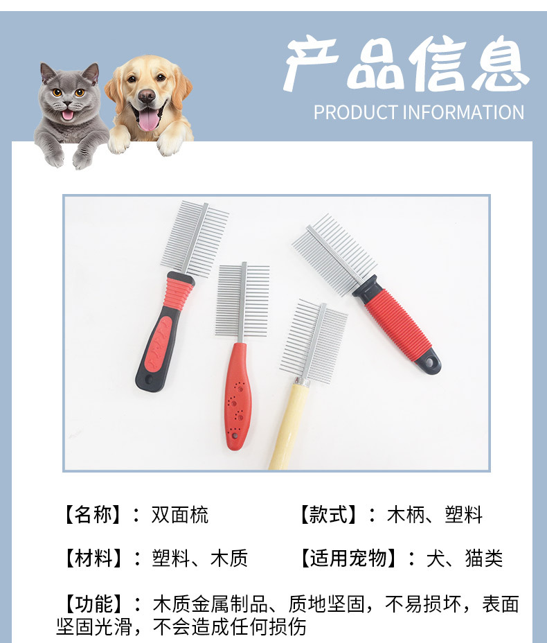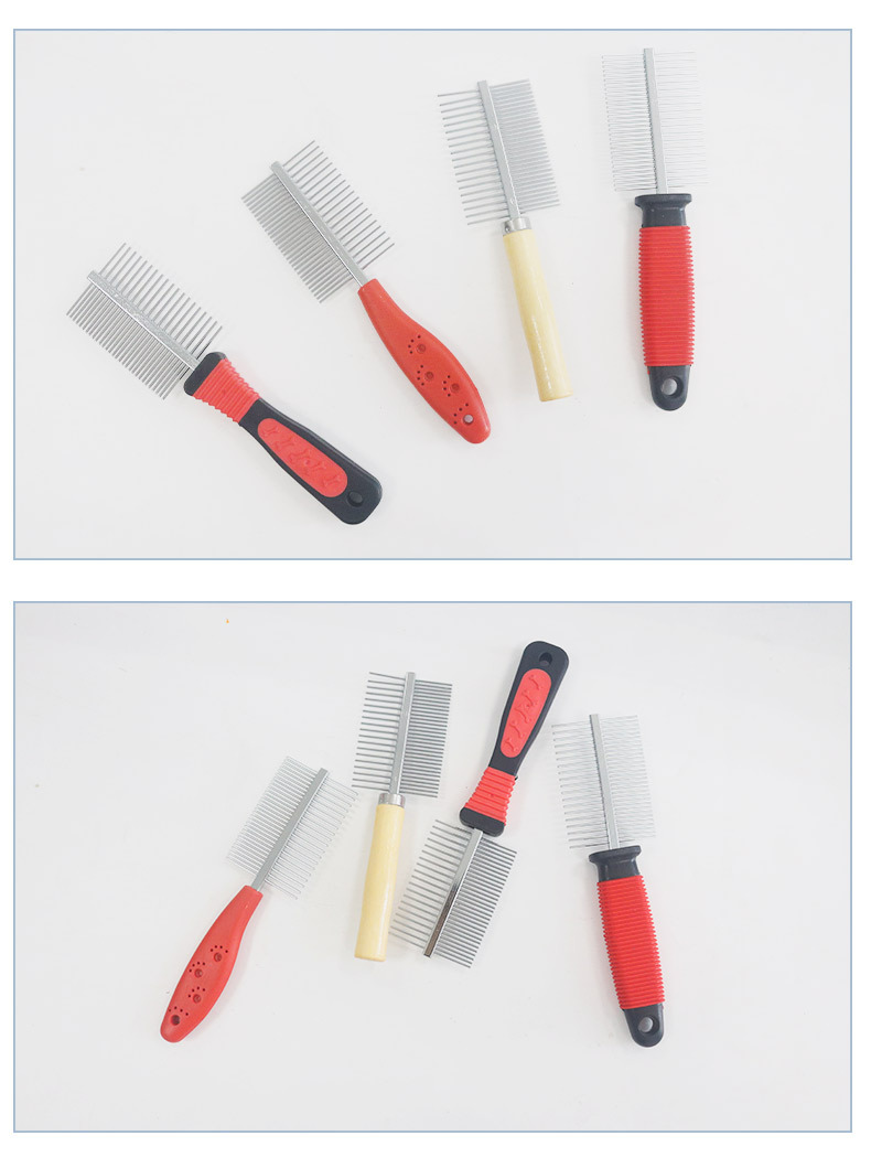 애완 동물 청소 빗, 나무 손잡이, 고밀도 치아 빗, 개 강철 빗, 양면 바늘 빗, 나무 손잡이, 스테인레스 스틸 미용 고양이 빗 도매스토어 가기