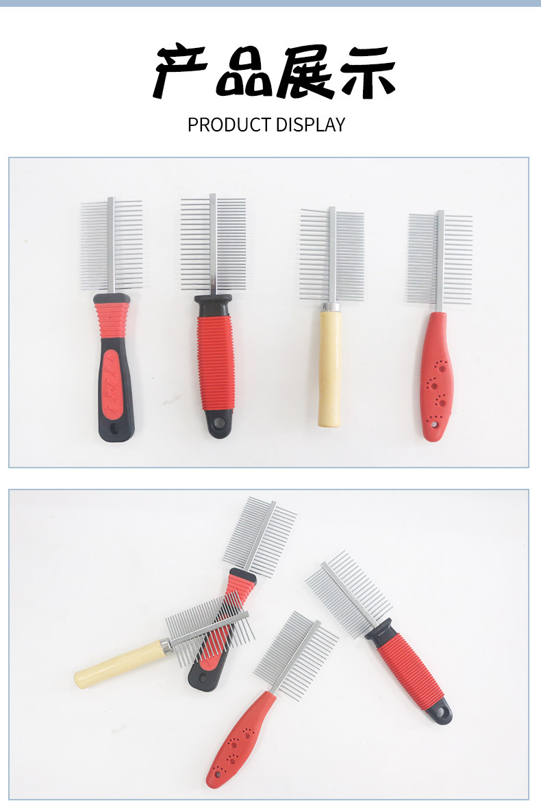 애완 동물 청소 빗, 나무 손잡이, 고밀도 치아 빗, 개 강철 빗, 양면 바늘 빗, 나무 손잡이, 스테인레스 스틸 미용 고양이 빗 도매