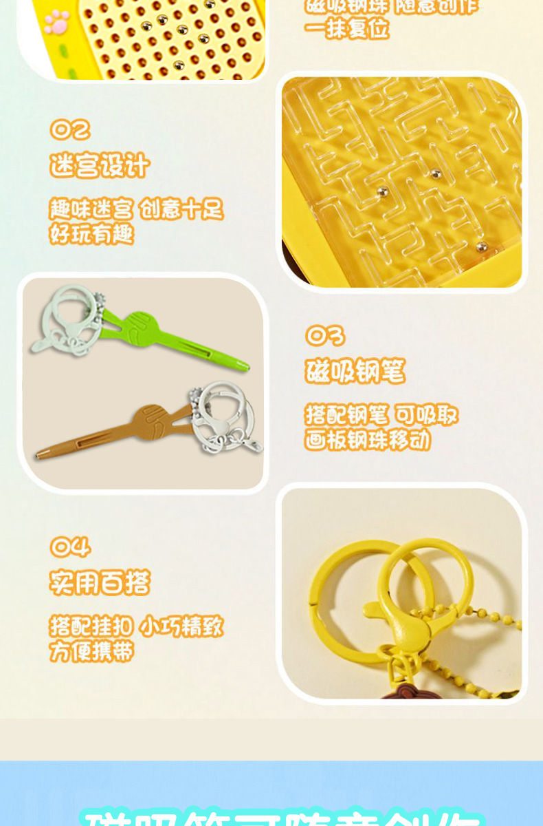 창의적인 자기 흡입 귀여운 스틸 볼 드로잉 보드 미로 더블 플레이 키 체인 만화 열쇠 고리 학교 가방 펜던트스토어 가기