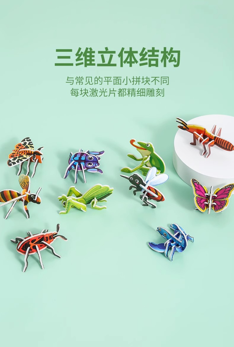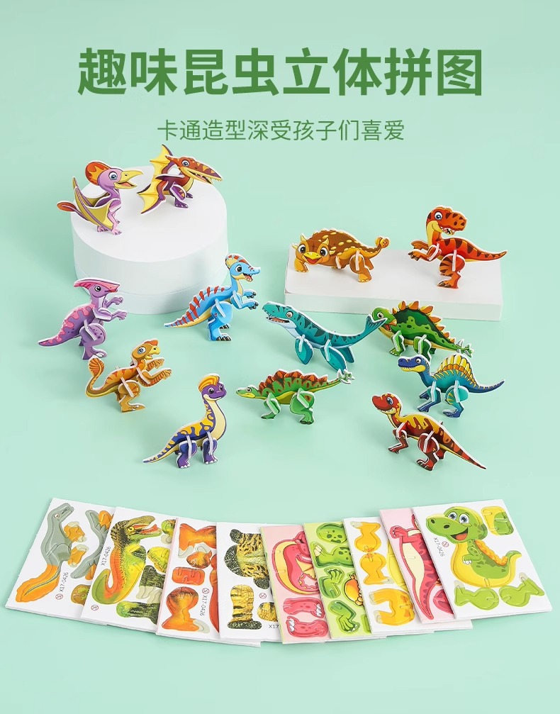 3D 재미있는 곤충 입체 퍼즐 재미있는 공룡 3D 퍼즐 퍼즐 어린이 조기 교육 수제 장난감 도매스토어 가기