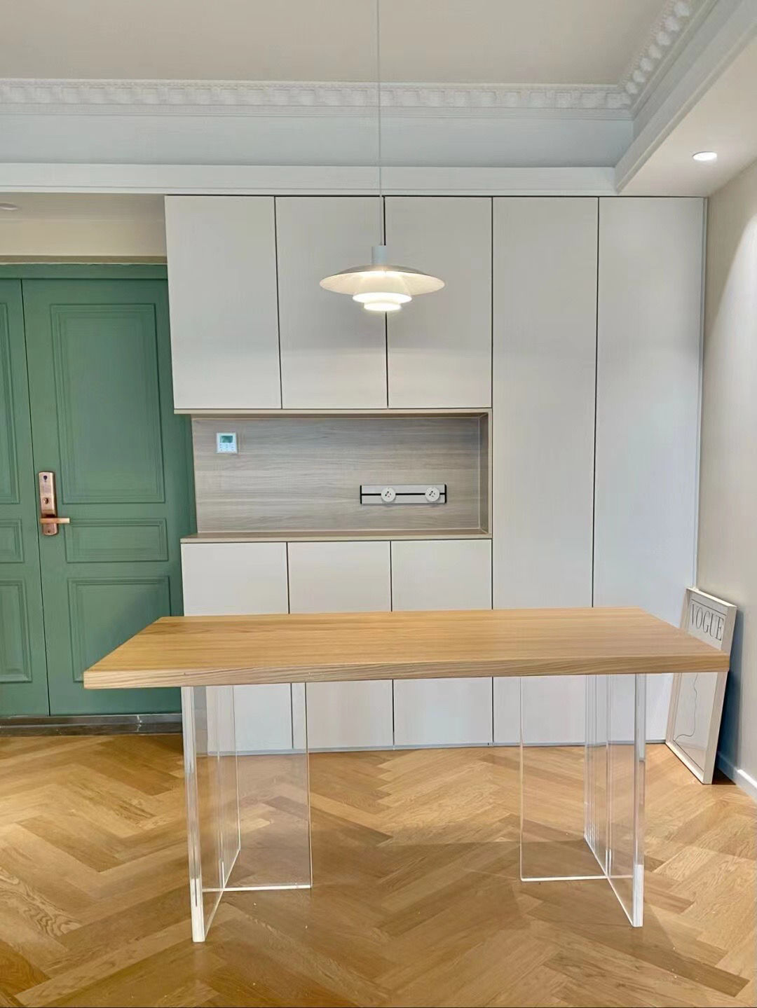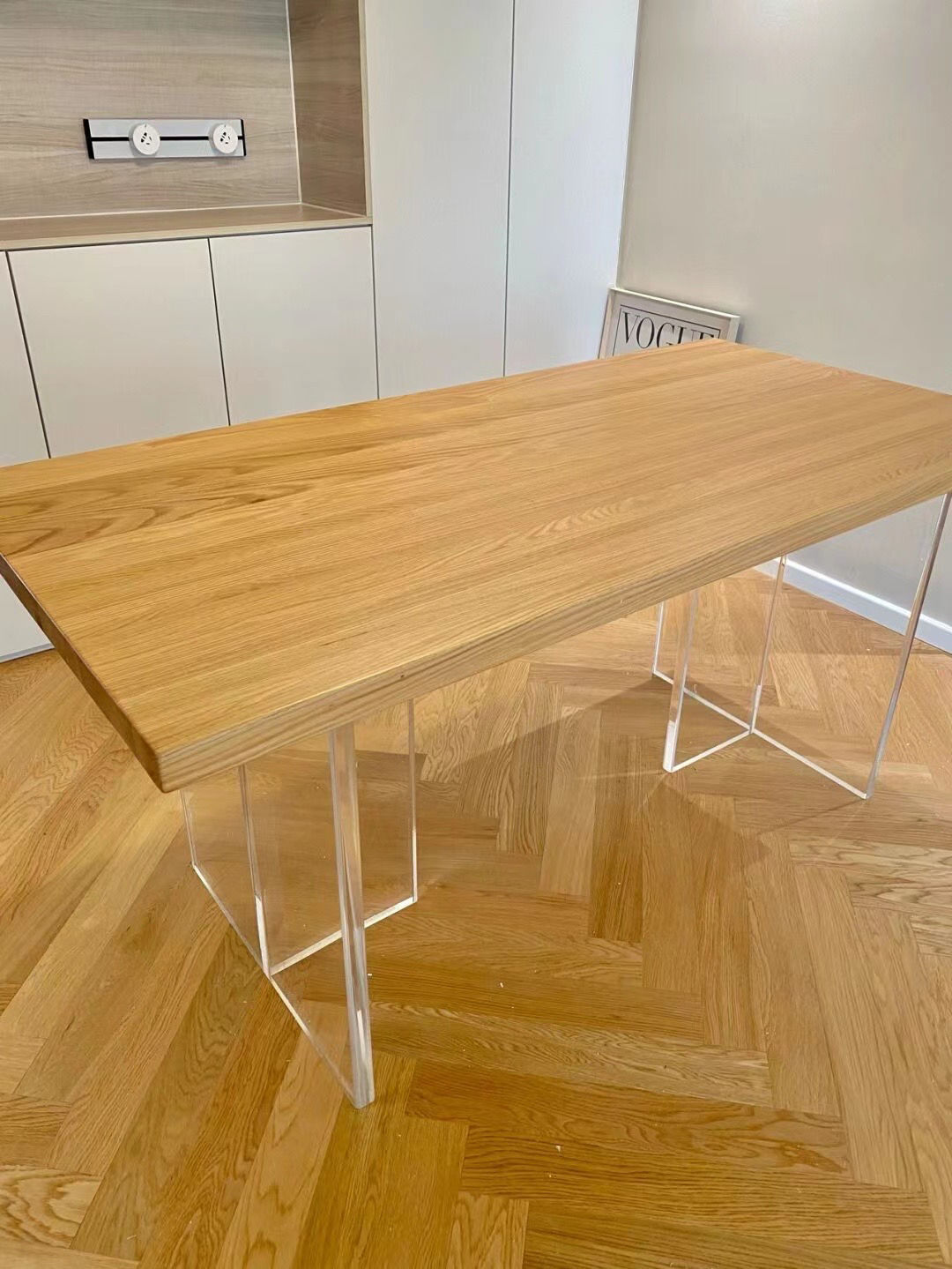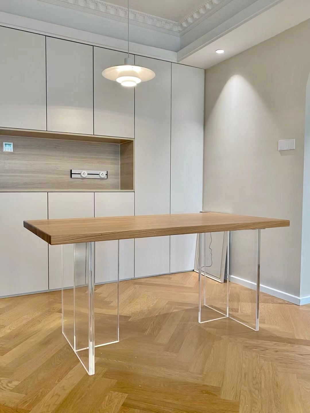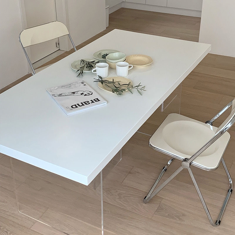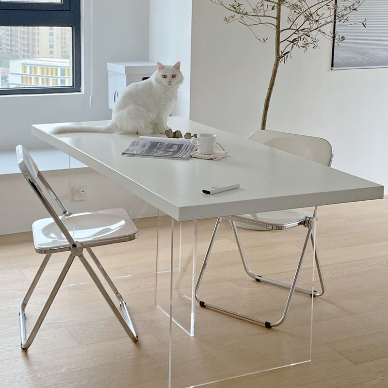 현대적인 미니멀리스트 라이트 럭셔리 아크릴 서스펜션 식탁 북유럽 단단한 나무 홈 오피스 테이블 간단한 창조적 인 통나무 긴 테이블