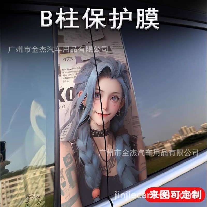 자동차 중간 기둥 스티커, 맞춤형 창의적 B 기둥 보호 필름, Jinx 장식 스티커, 중간 기둥 수정 스티커