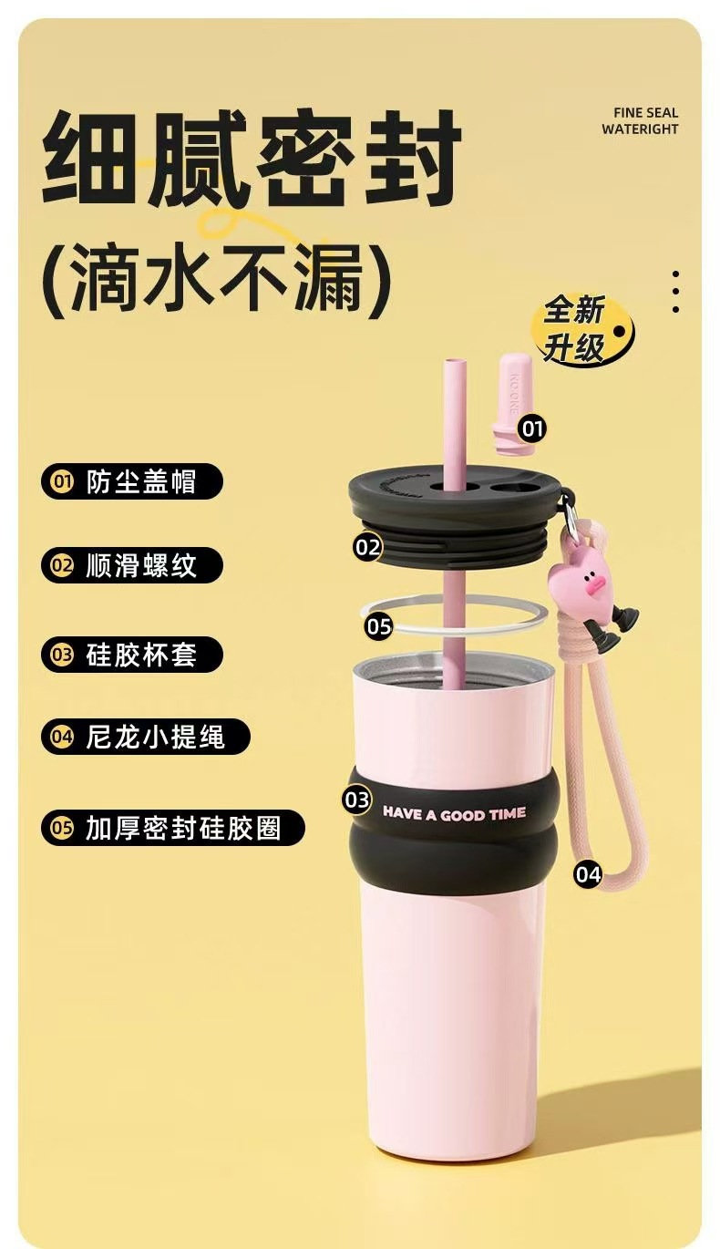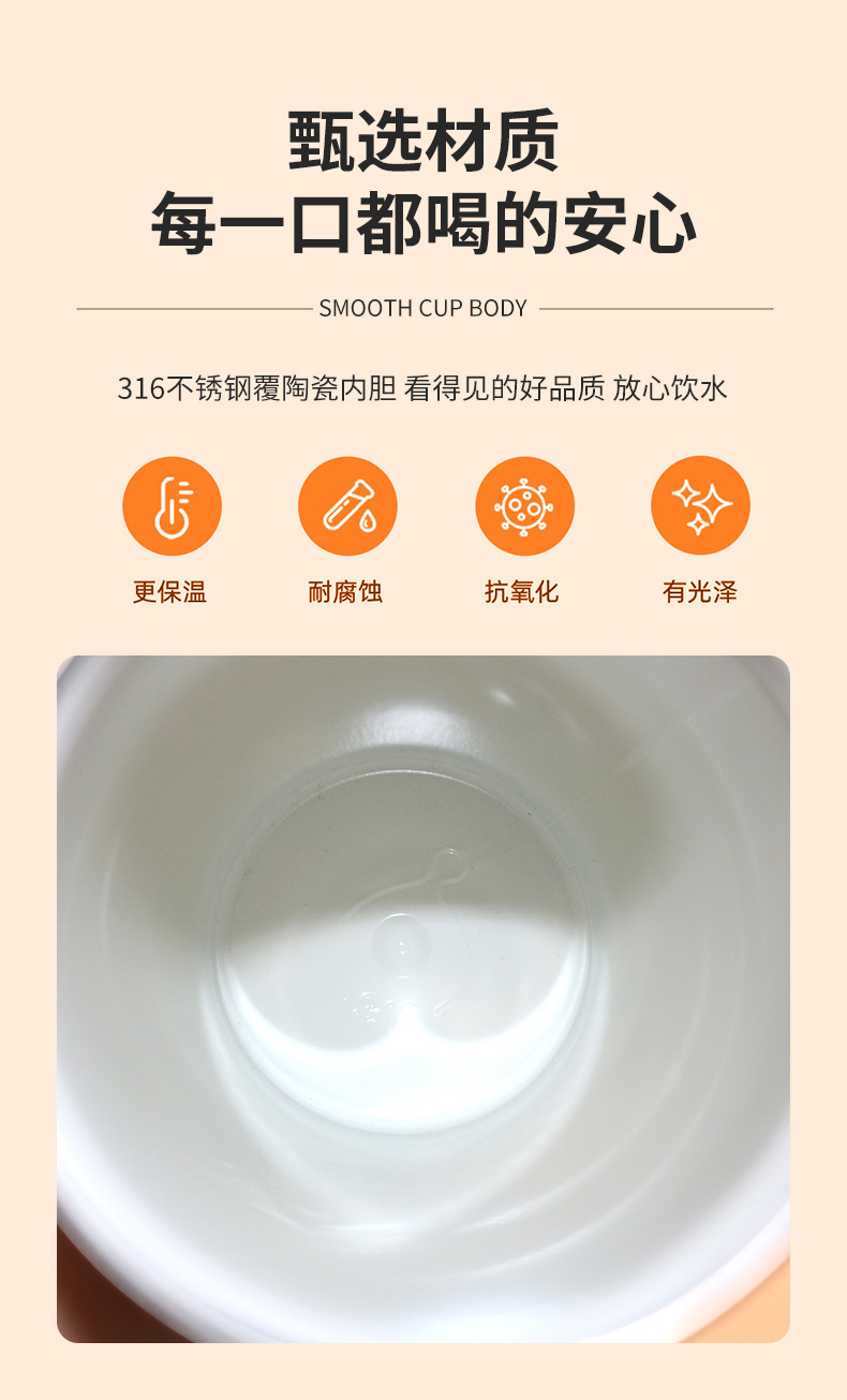 신형 316 스테인리스 보온병 심플하고 세련된 대용량 보온병 세라믹 내부 휴대용 차량용 물컵