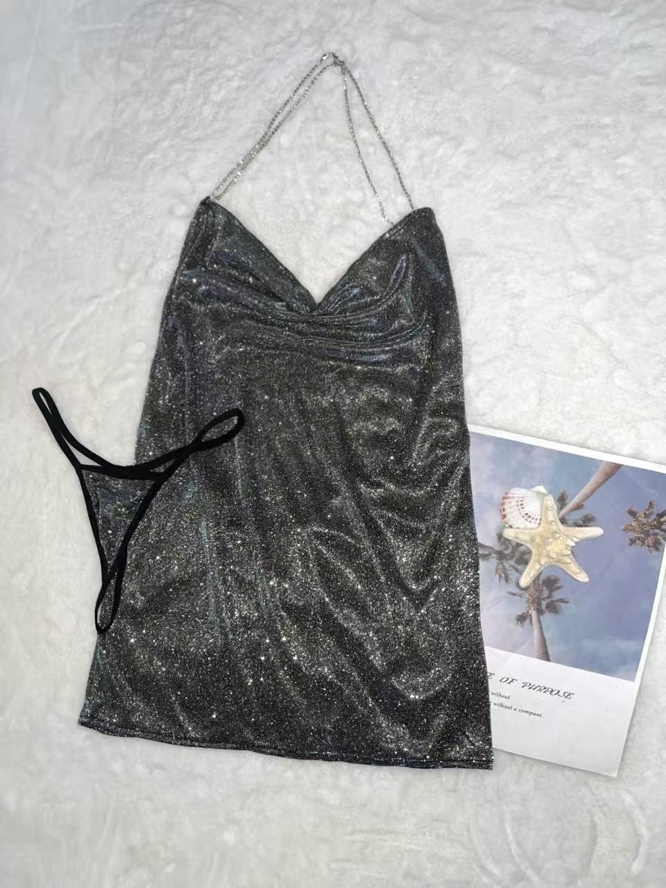 유럽과 미국의 섹시한 속옷, 순수한 욕망, 큰 등이없는 다이아몬드 체인 크로스 서스펜더, 반짝이는 엉덩이 덮는 유혹 드레스 유니폼