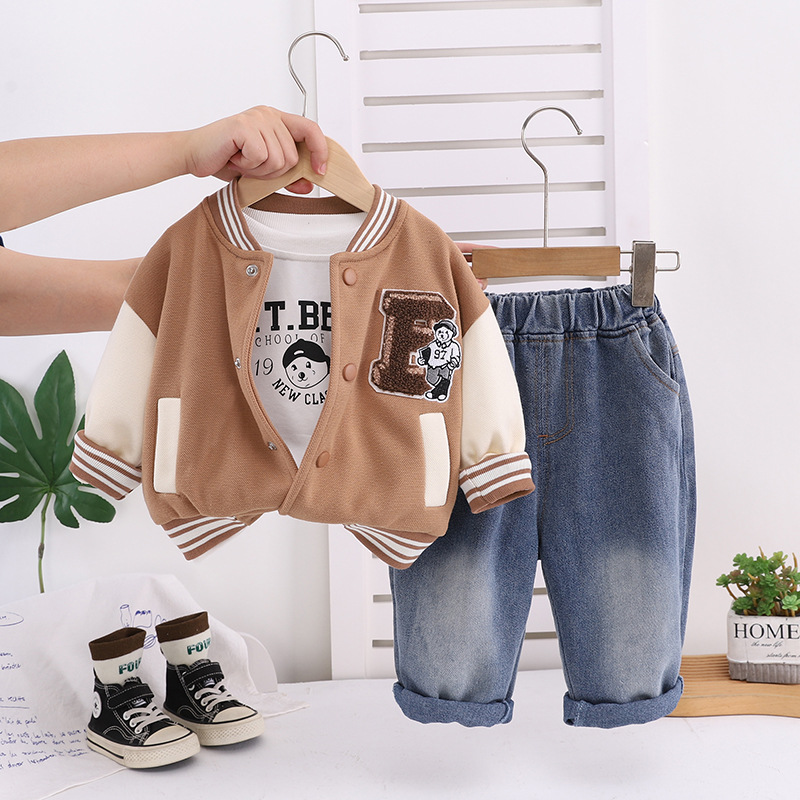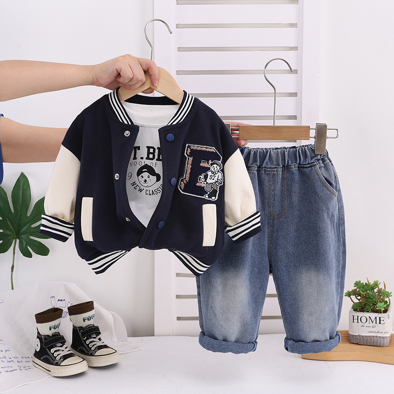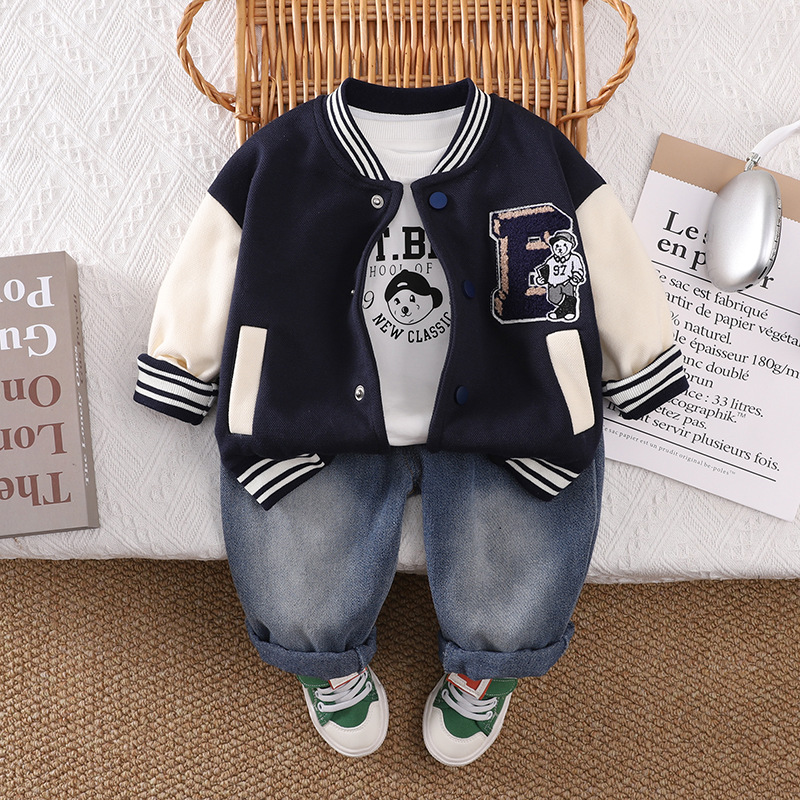 Zhilu 아동복 소년 봄, 가을 곰 야구 유니폼 정장 아기 가을 의류 세련된 3 피스 아기 아동복스토어 가기
