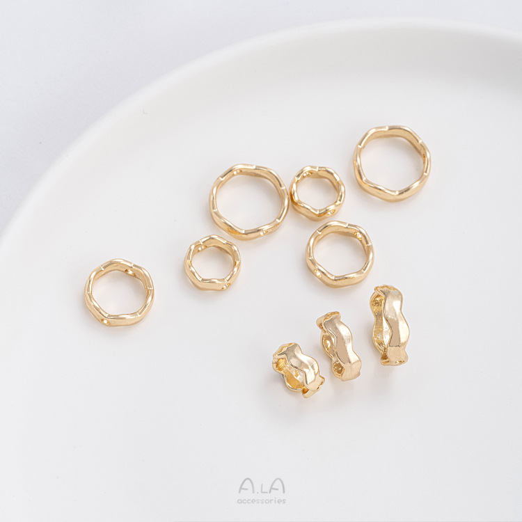 14K 금으로 채워진 색상 보존 물결 모양의 링 세트 비드 링 핸드메이드 DIY 스트랜드 진주 팔찌 목걸이 쥬얼리 액세서리