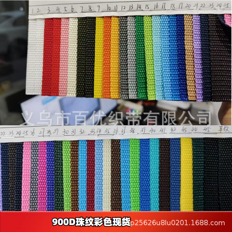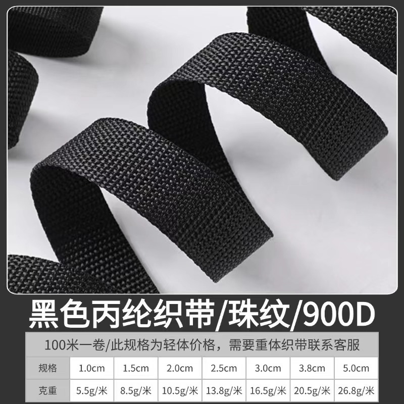 下面这款是900D外包边宽度1.0CM-5.0CM厚度0.6mm-0.7mm2.0CM-2.5CM有彩色100米一盘的