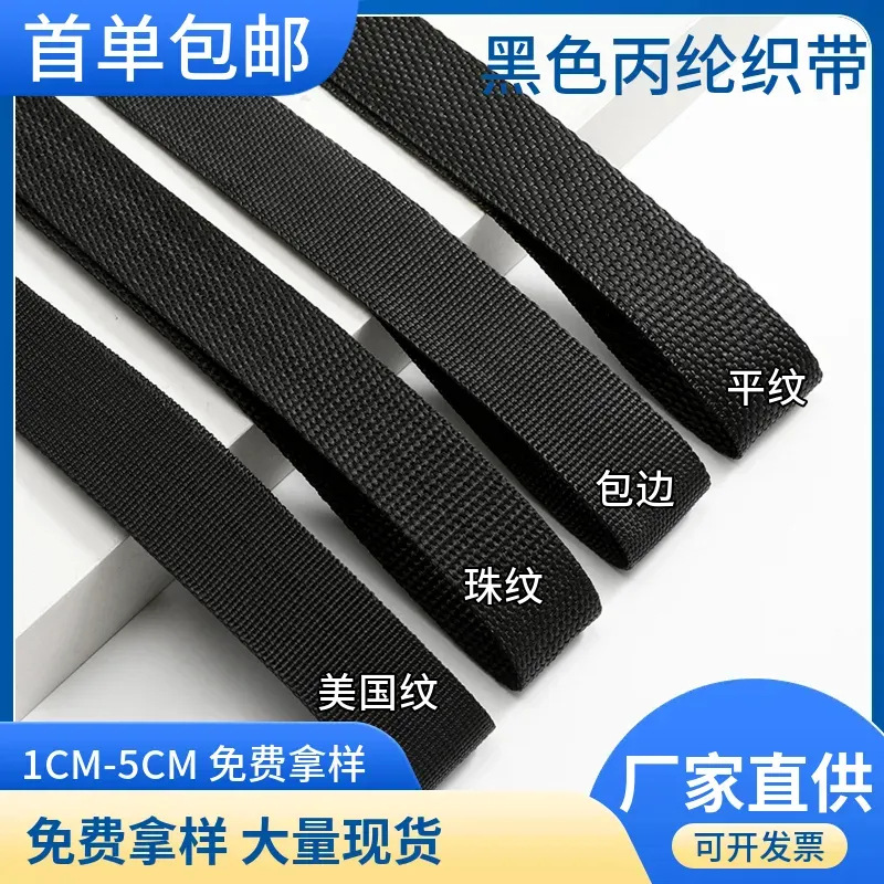 폴리프로필렌 웨빙 제조 업체 도매 검정색 미국 패턴 구슬 패턴 일반 가장자리 스트립 핸드 스트랩 PP 짠 스트랩