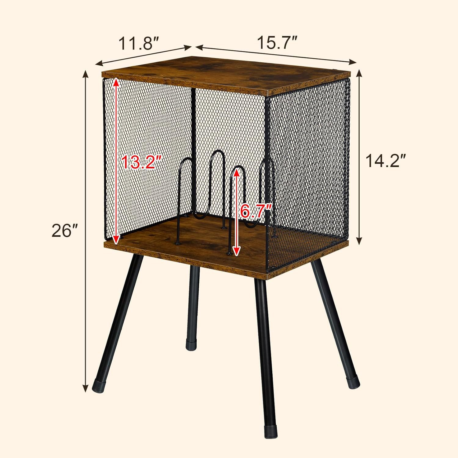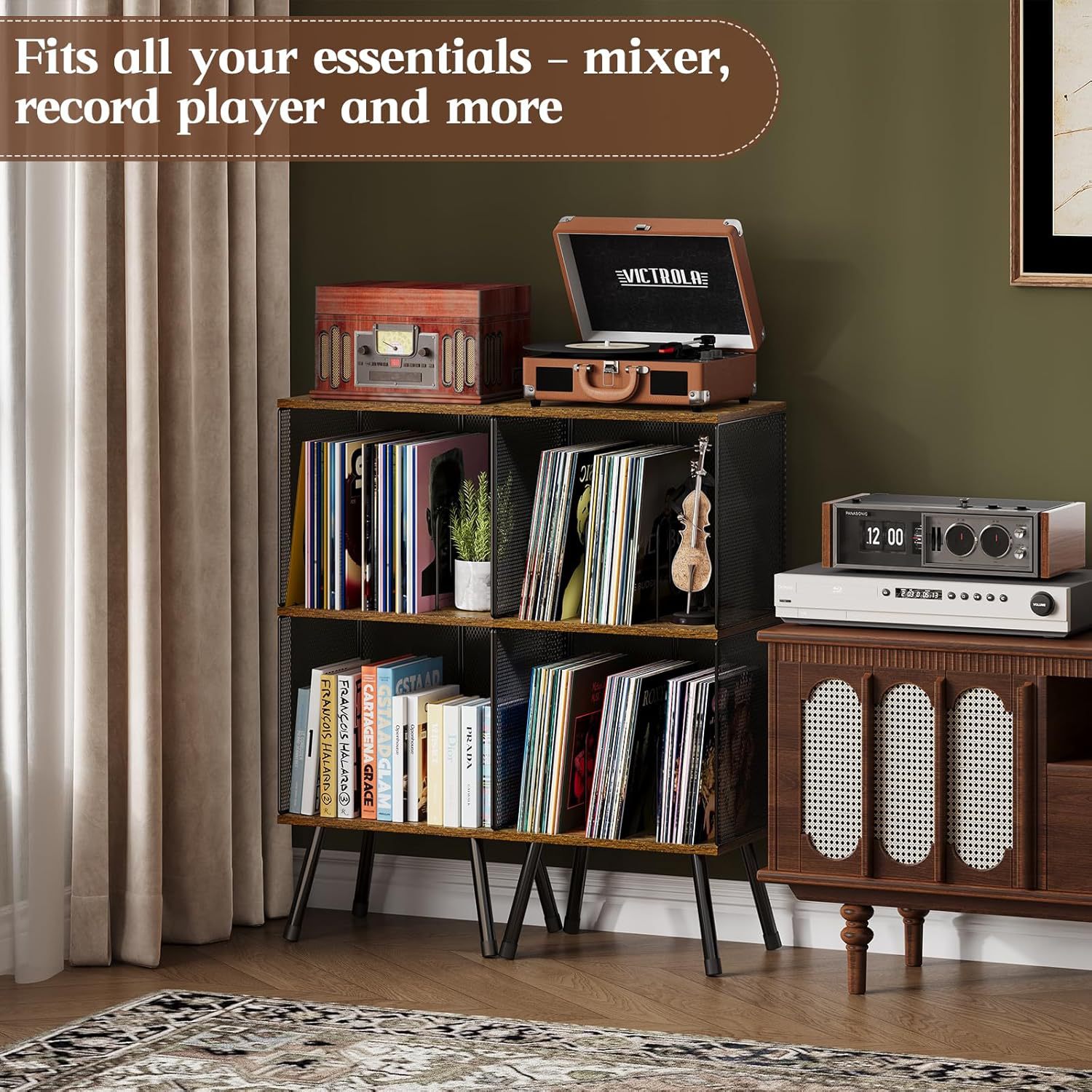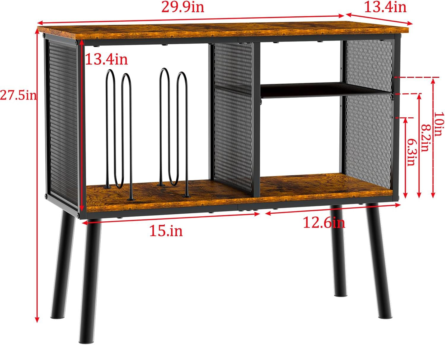 여러 앨범을 보관할 수 있는 다리가 있는 수납 선반이 있는 국경을 넘는 현물 레코드 플레이어 테이블, 조절 가능한 칸막이가 있는 레코드 보관 선반스토어 가기