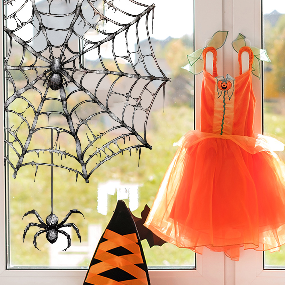 Yiyao JD3487 국경 간 인기 판매 할로윈 거미줄 공포 재미 있은 창 스티커 거미 드레스 휴일 정전기 스티커