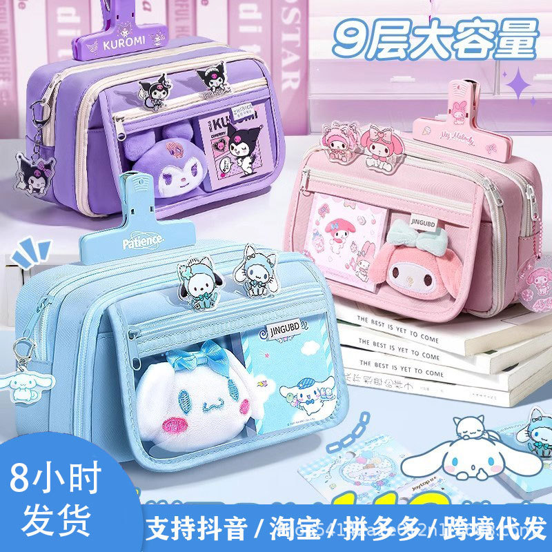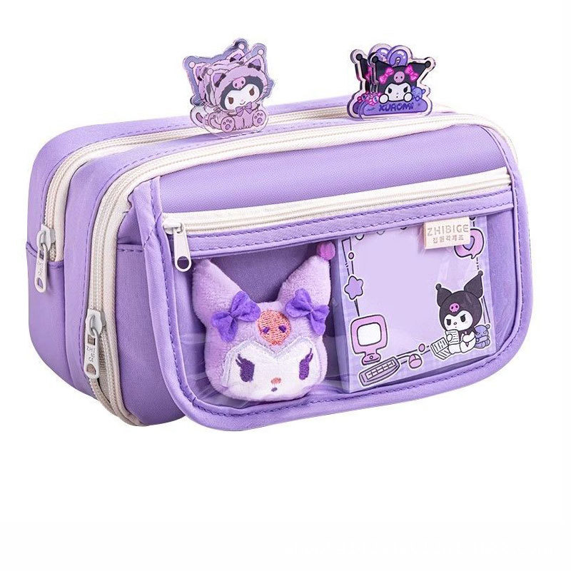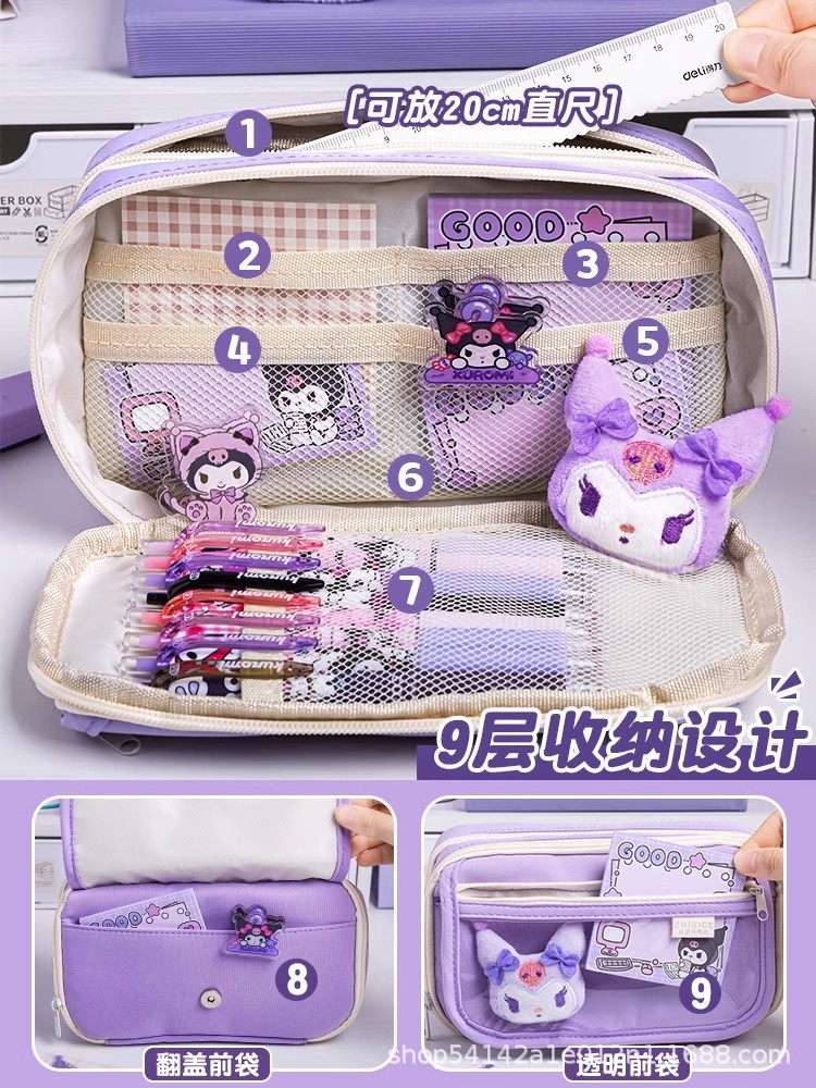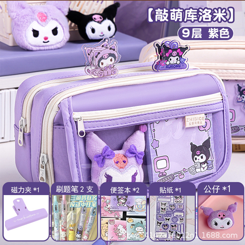 9층 쿠로미 문구 상자, 대용량, 여학생을 위한 개학 필수품, 고급스러운 플립형 캔버스 필통