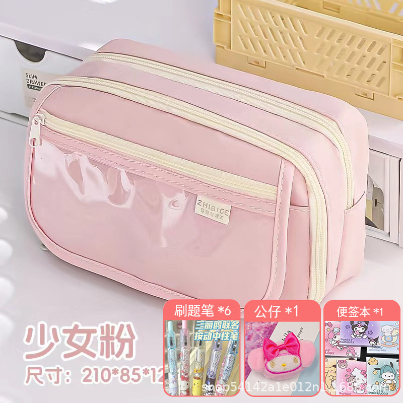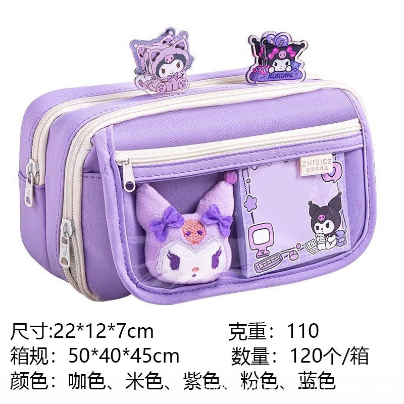 9층 쿠로미 문구 상자, 대용량, 여학생을 위한 개학 필수품, 고급스러운 플립형 캔버스 필통스토어 가기