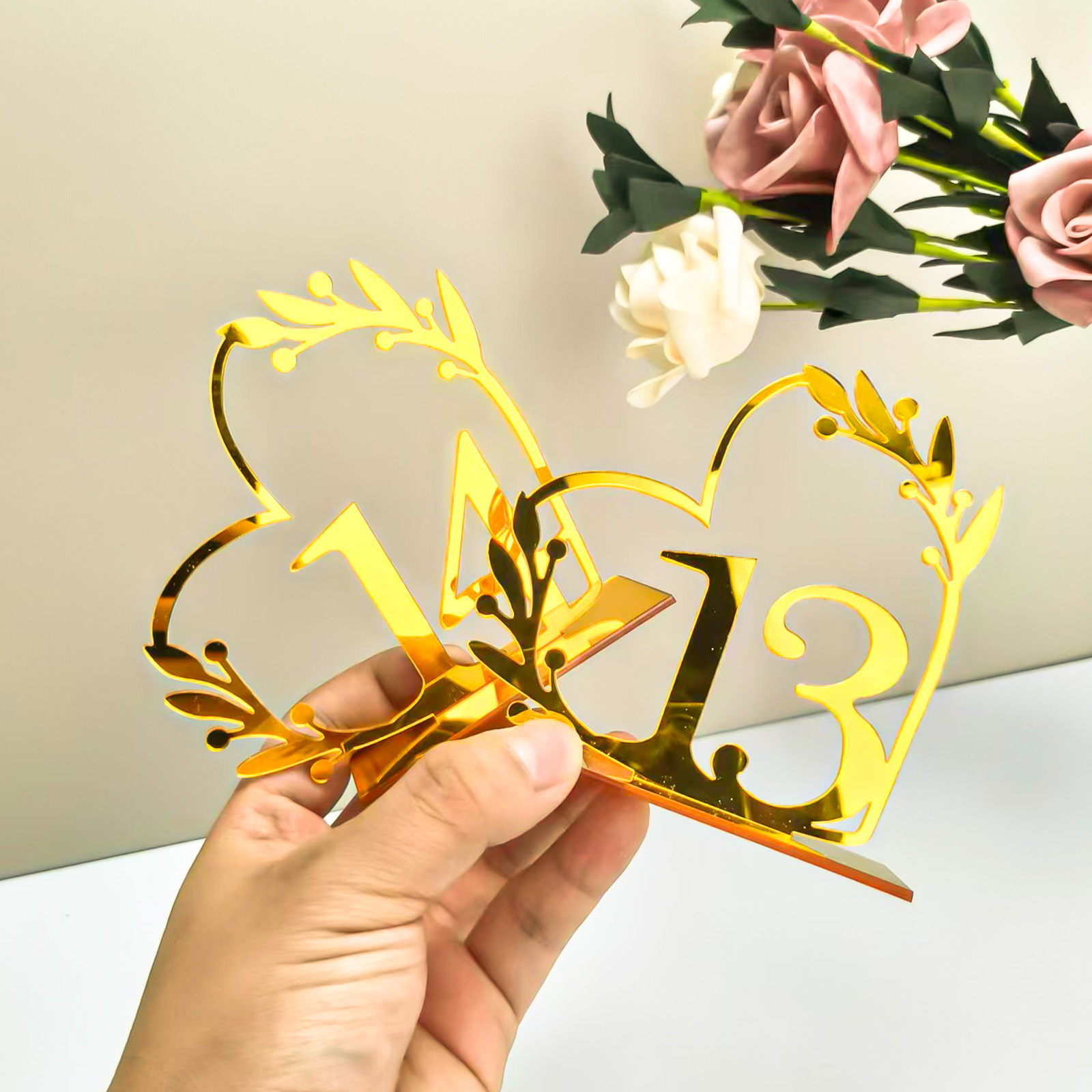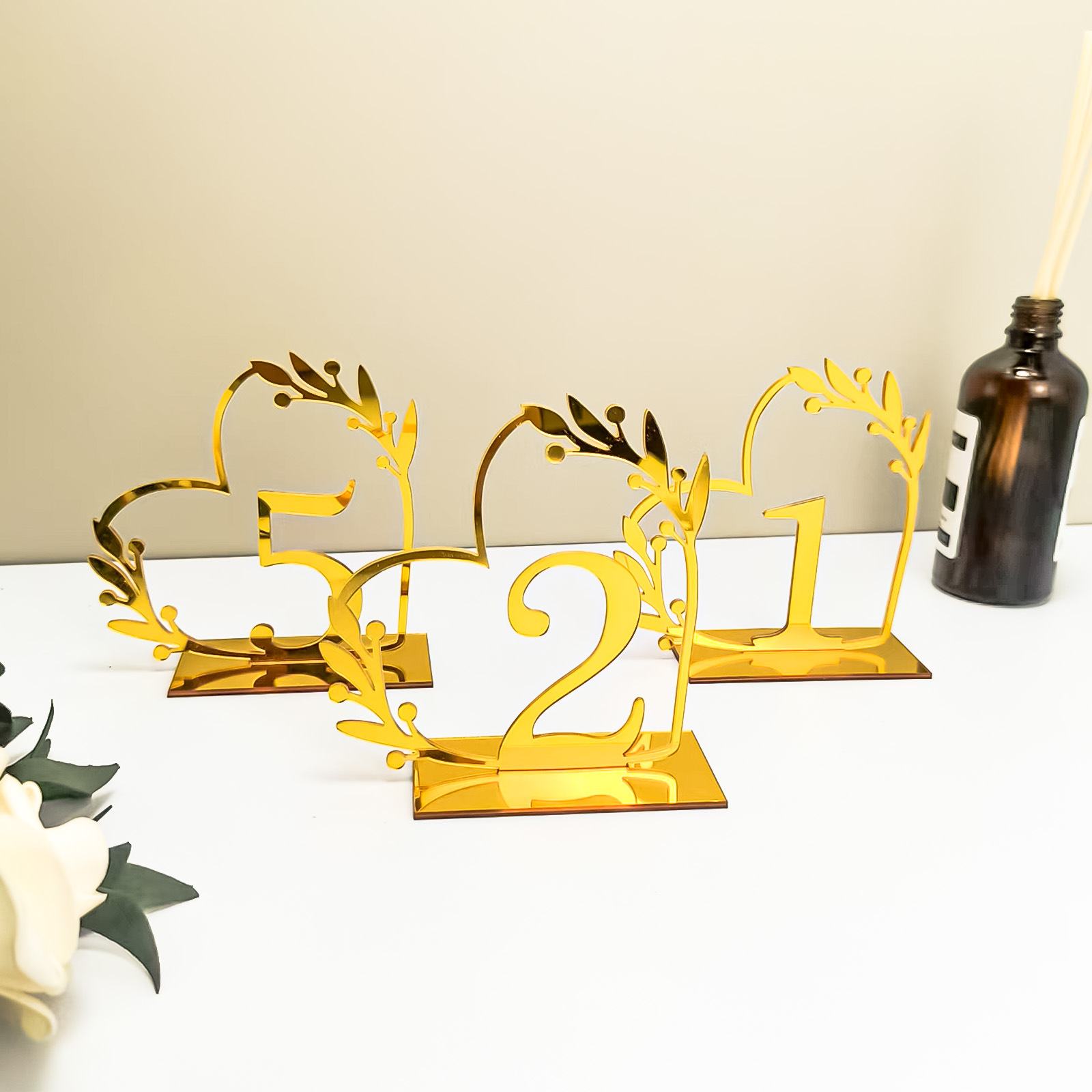 아크릴 하트 모양 거울 테이블 번호판 웨딩 장식용 창의적인 좌석 번호판 DIY 결혼식 생일 파티 장식판