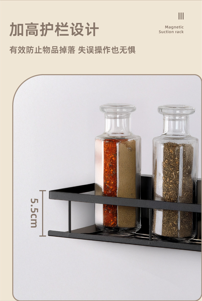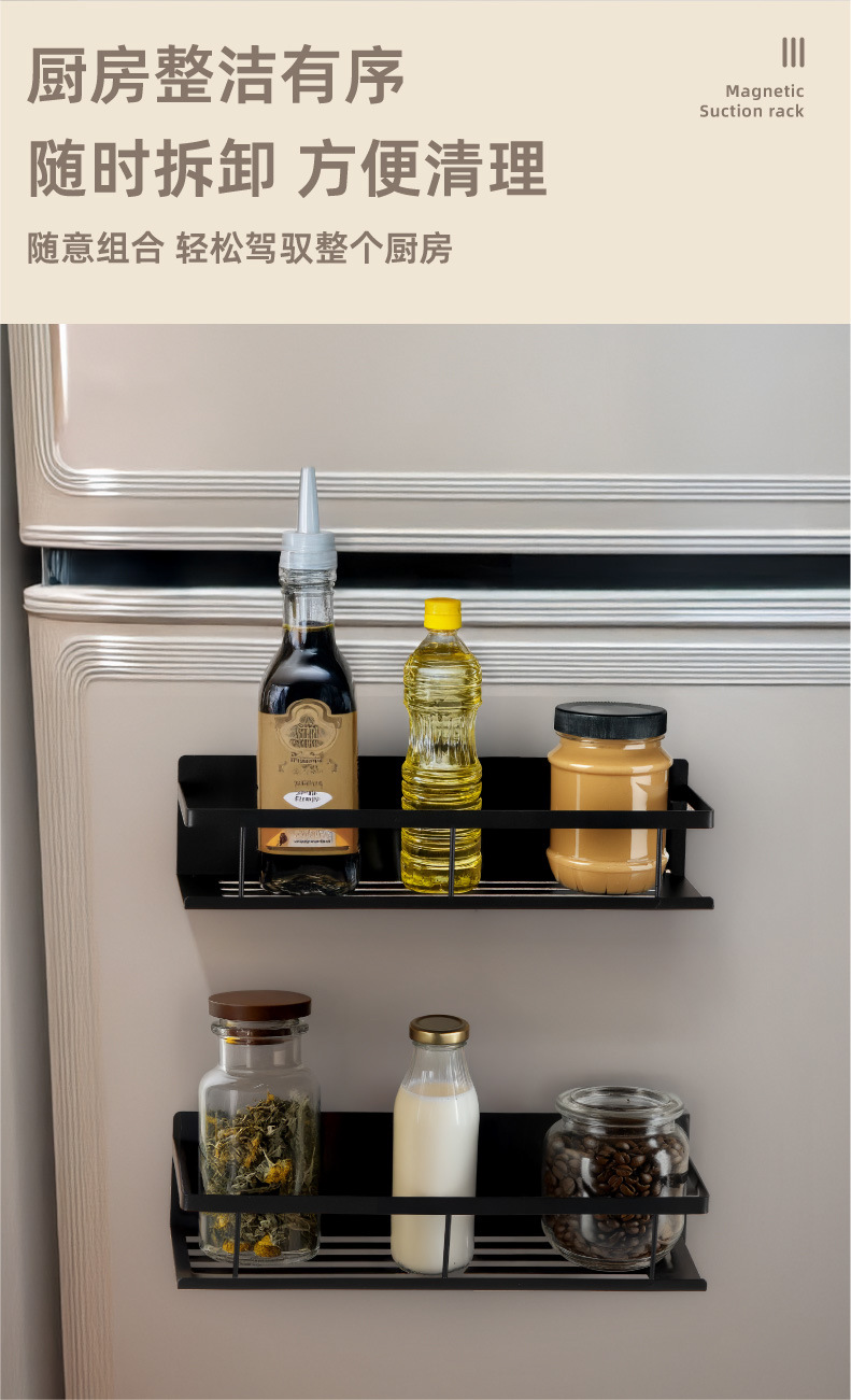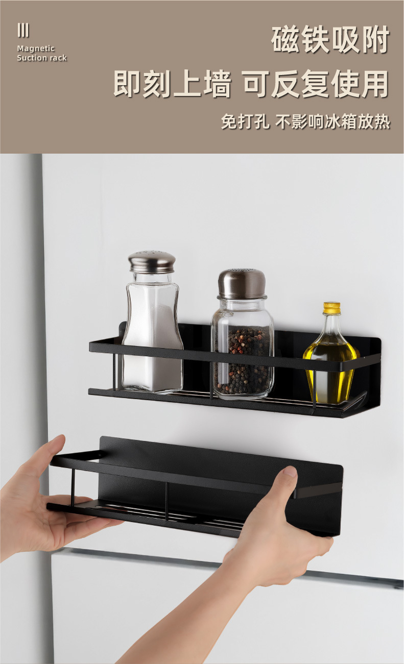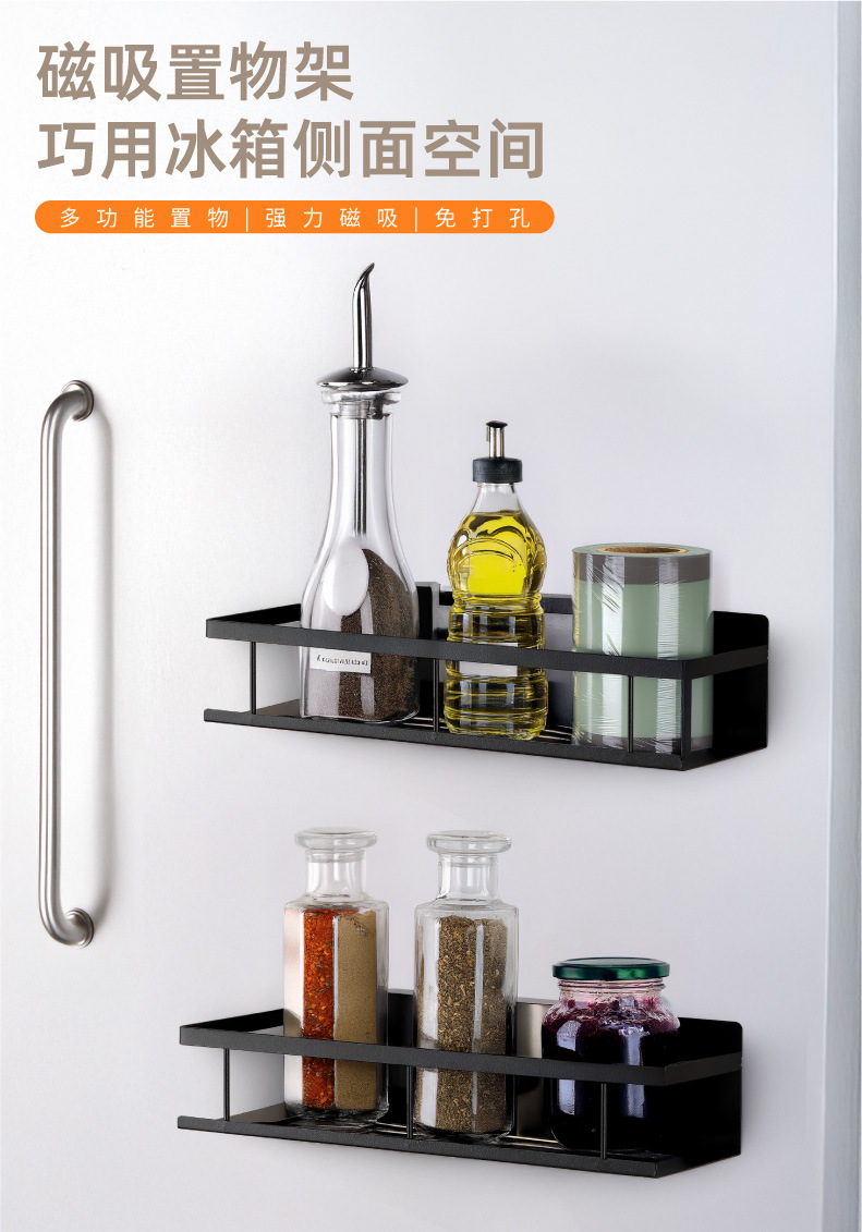 가정용 주방 보관 용품을 위한 국경 간 냉장고 측면 자기 조미료 보관 랙 펀치 없는 조미료 보관 랙