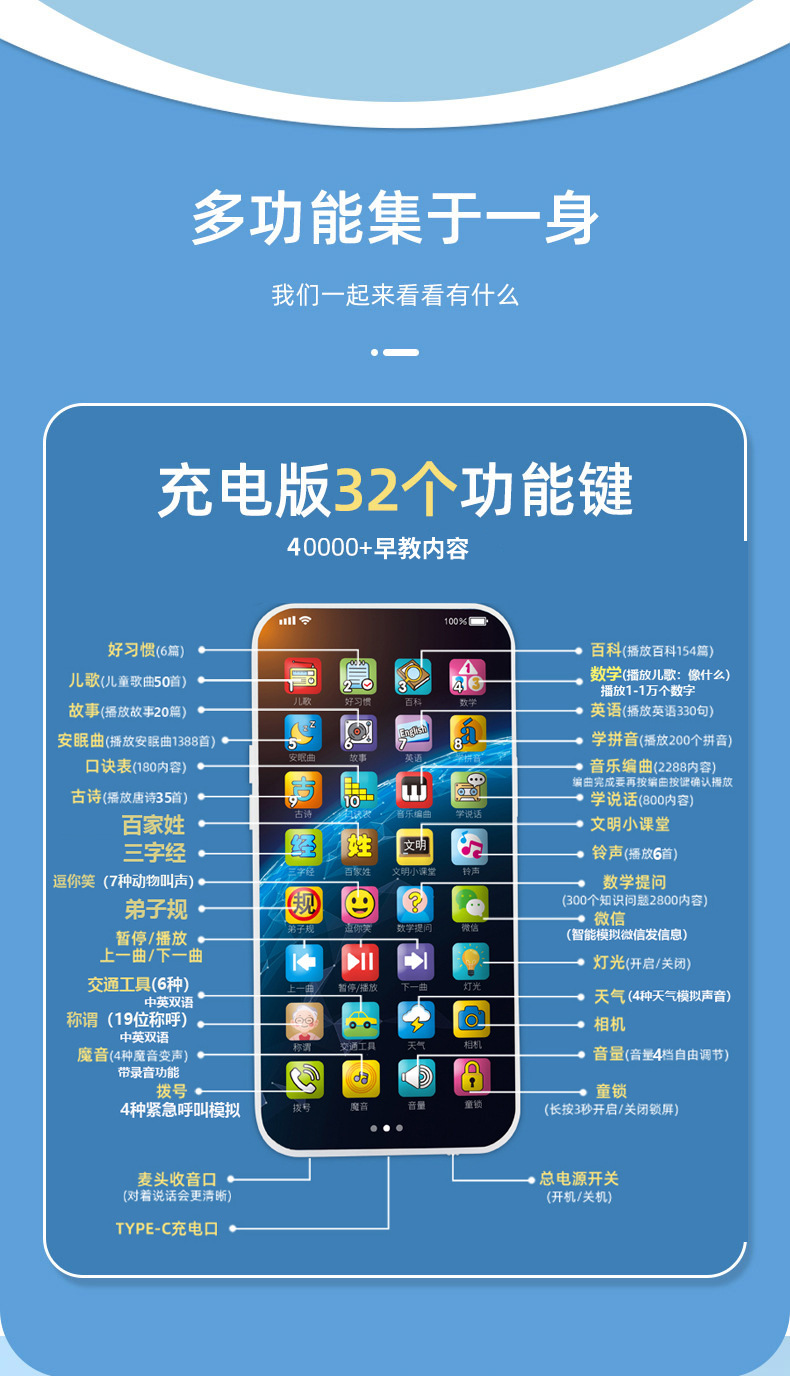 • 32키(귀여운 토끼) 40000개 이상의 콘텐츠 + 충전 케이블 + 랜야드 조명 버전