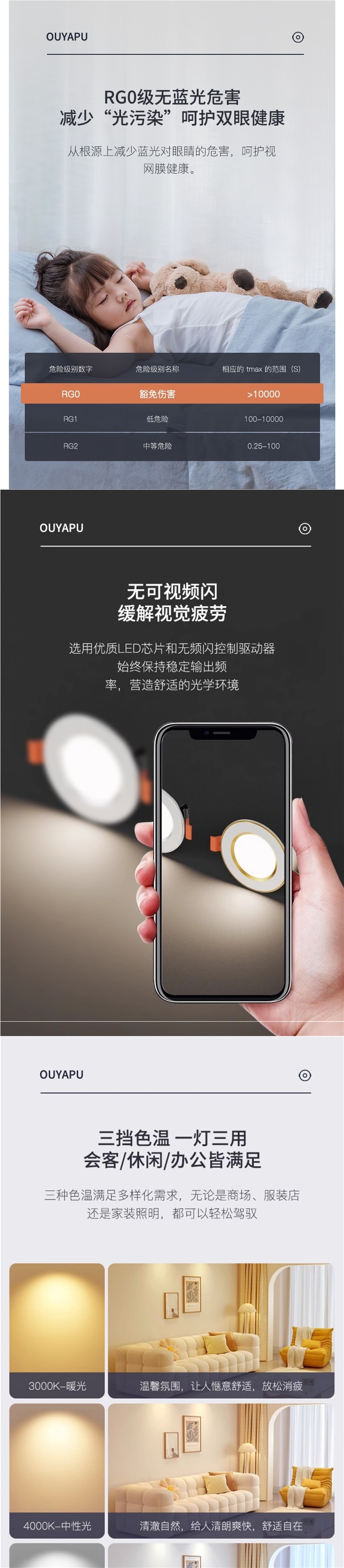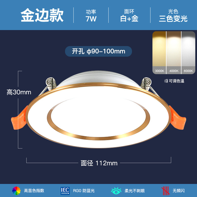 3색 디밍 LED 다운라이트 5w 매립형 개방형 구멍 6.5 7 7.5 8 9cm 4인치 12w 천장 조명 스포트라이트스토어 가기