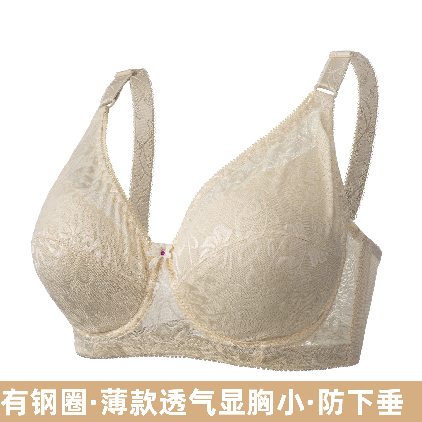 스펀지가 없는 와이어가 있는 얇은 엄마 브라, 큰 가슴을 더 작아 보이게 하는 푸쉬업 여성 속옷, 큰 사이즈의 큰 컵 레이스 브라