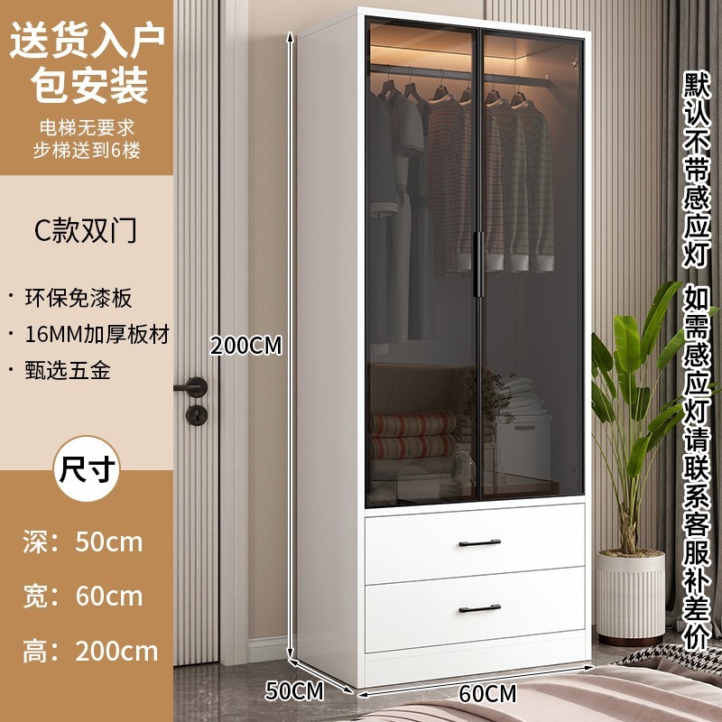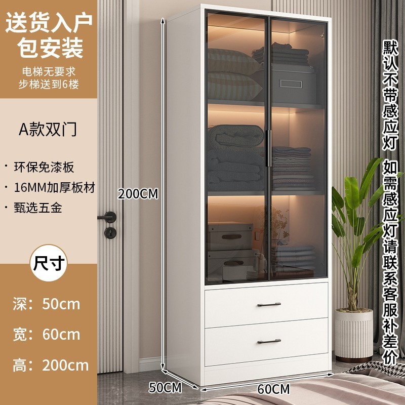 옷장 홈 현대적인 조명 럭셔리 캐비닛 어린이 유리 도어 경제적 인 임대 침실 작은 아파트 옷장