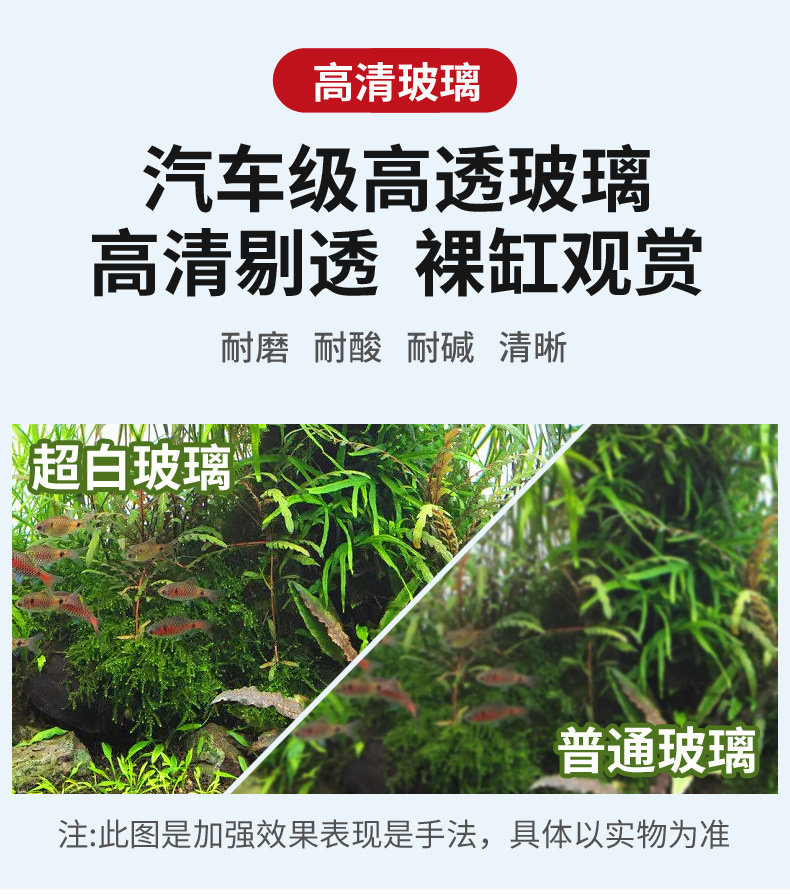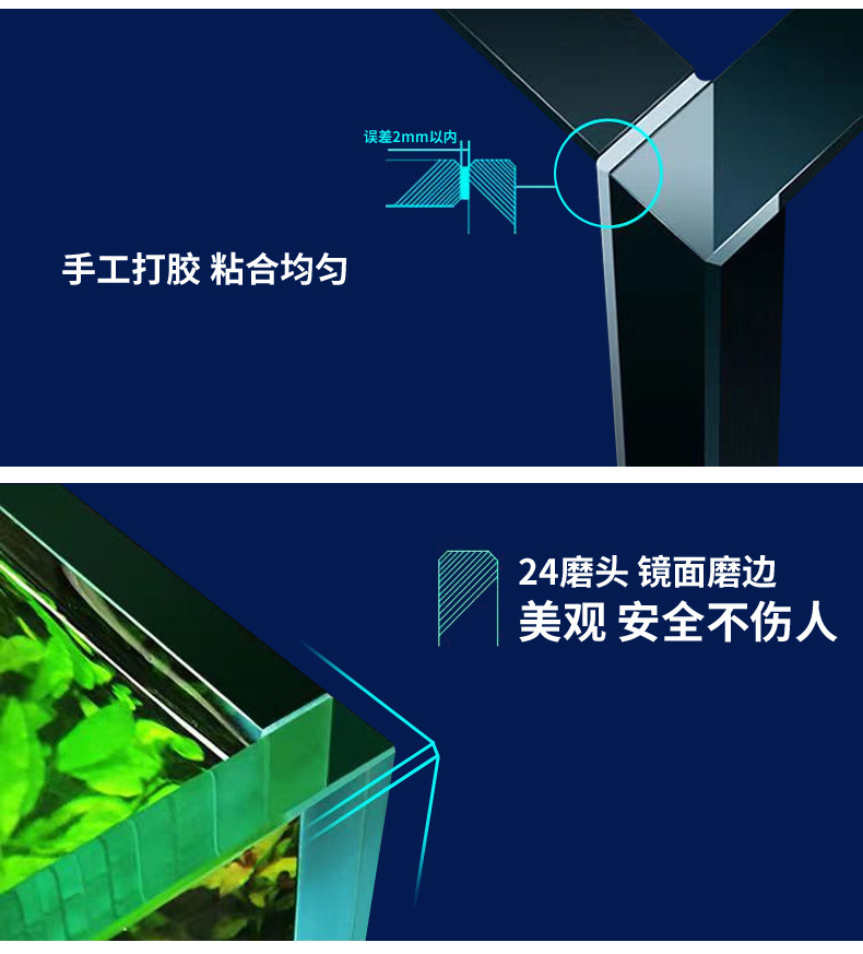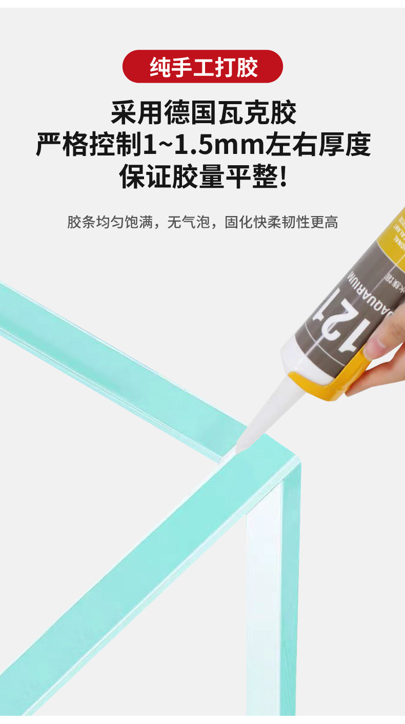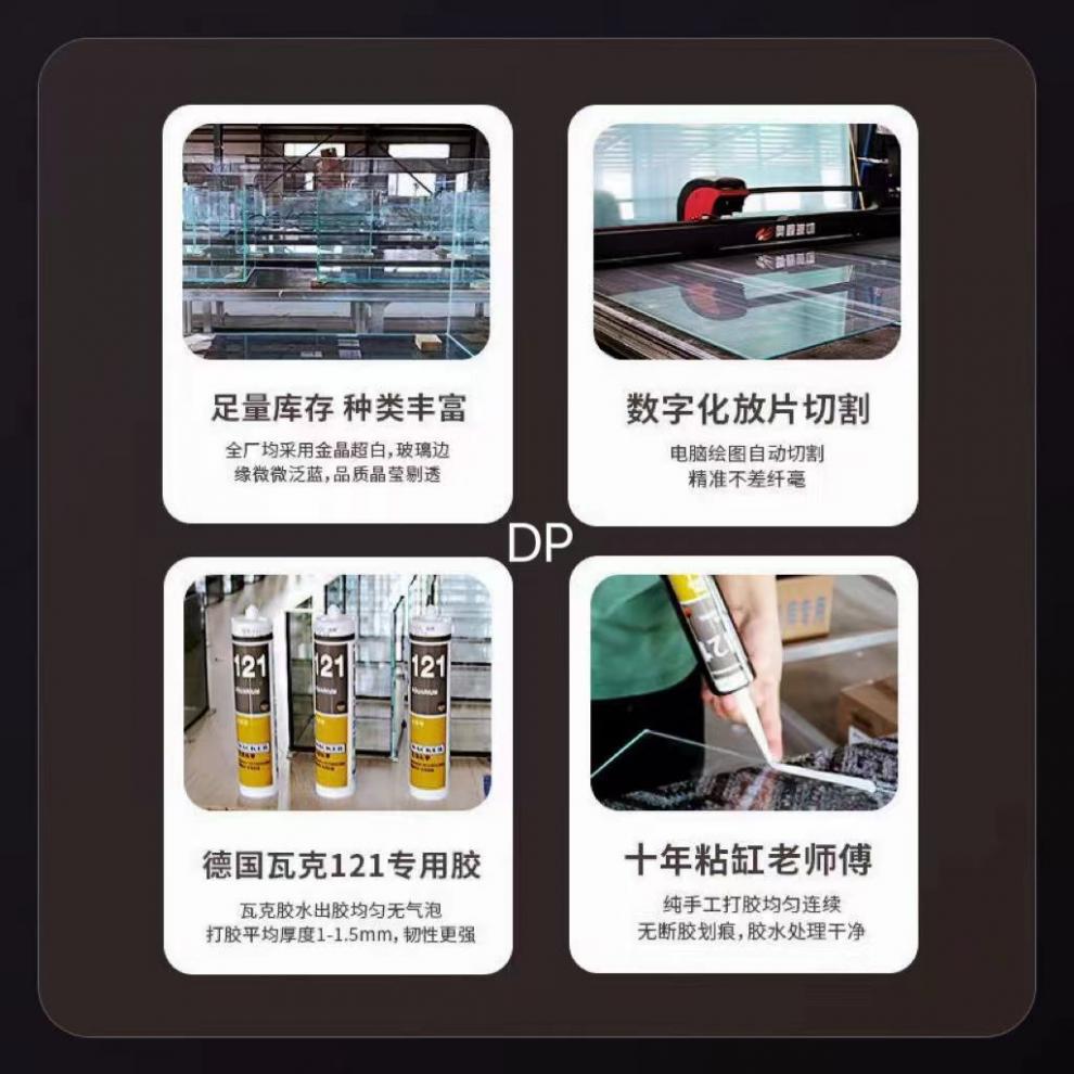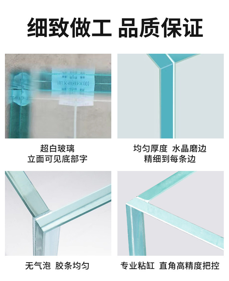 수초, 계곡, Lan Shou 거북이 수조, 대형, 중형 및 소형 직사각형을 만들기 위해 못으로 고정된 금색 초백색 유리 수조