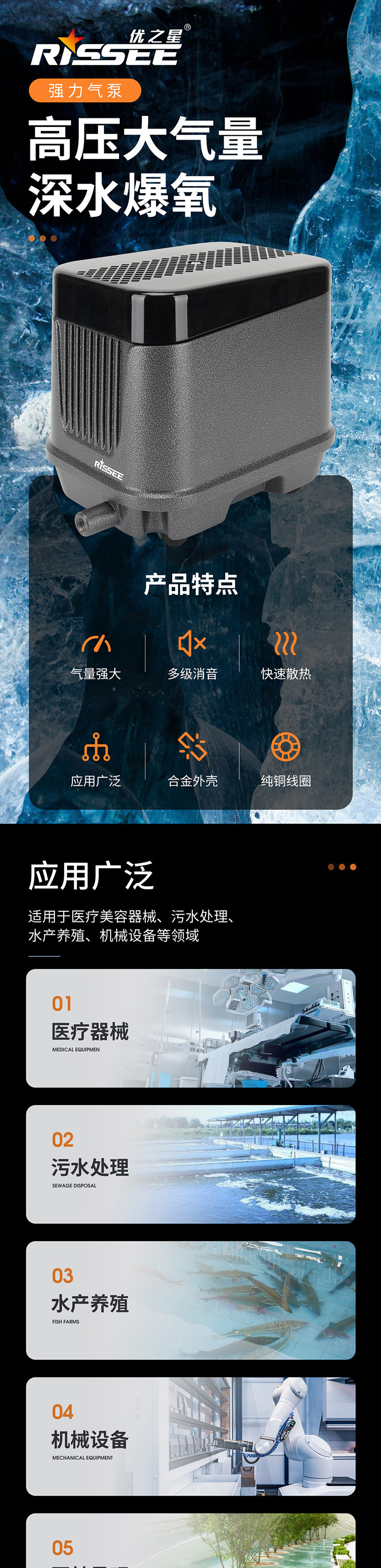 산소 펌프 고출력 산소 펌프 수족관 해산물 산소 공급기 물고기 연못 양식 수처리 공기 펌프
