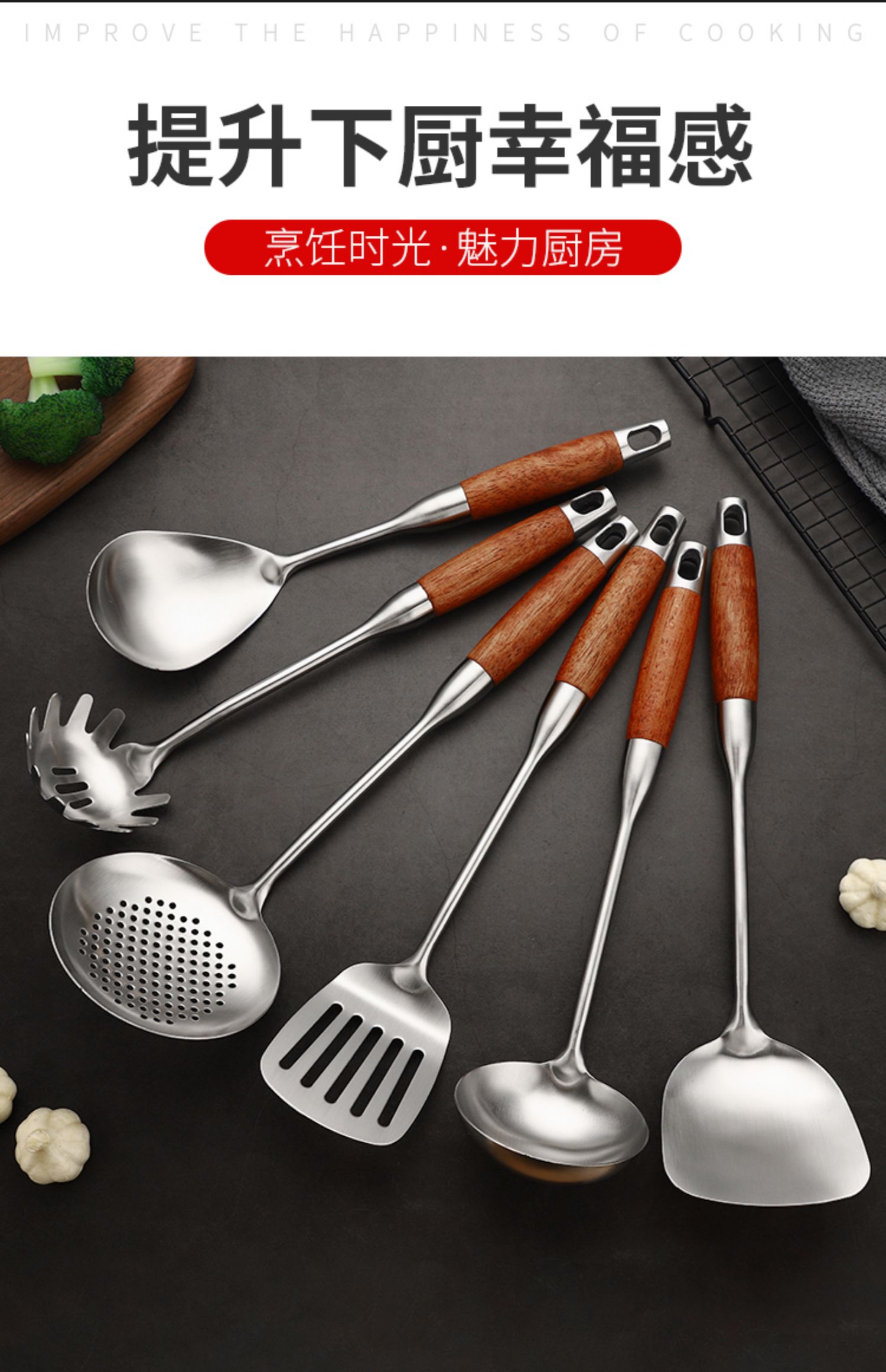 독일 주방용품 세트 304 스테인레스 스틸 로즈우드 조리기구 5피스 주걱 세트 가정용 조리용 주걱 세트스토어 가기