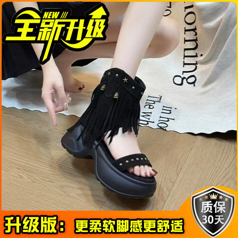 두꺼운 밑창이 있는 플랫폼 여성용 태슬 샌들 여름 신작 로마 샌들 여성용 패셔너블하고 다재다능한 발가락 비치 샌들