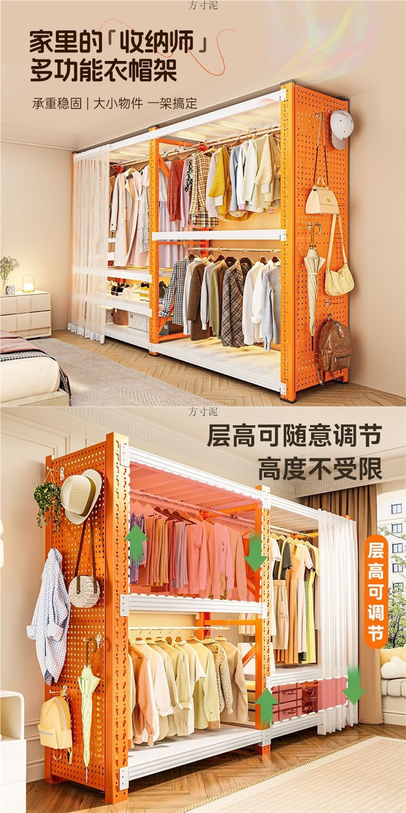 • 오렌지색과 흰색 [무료 홀보드 2개 + 커튼 2개 + 옷봉 3개 + 후크]