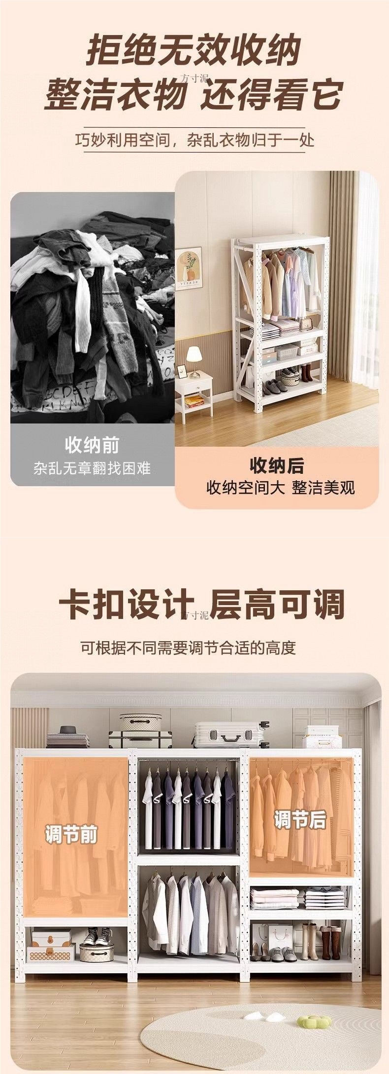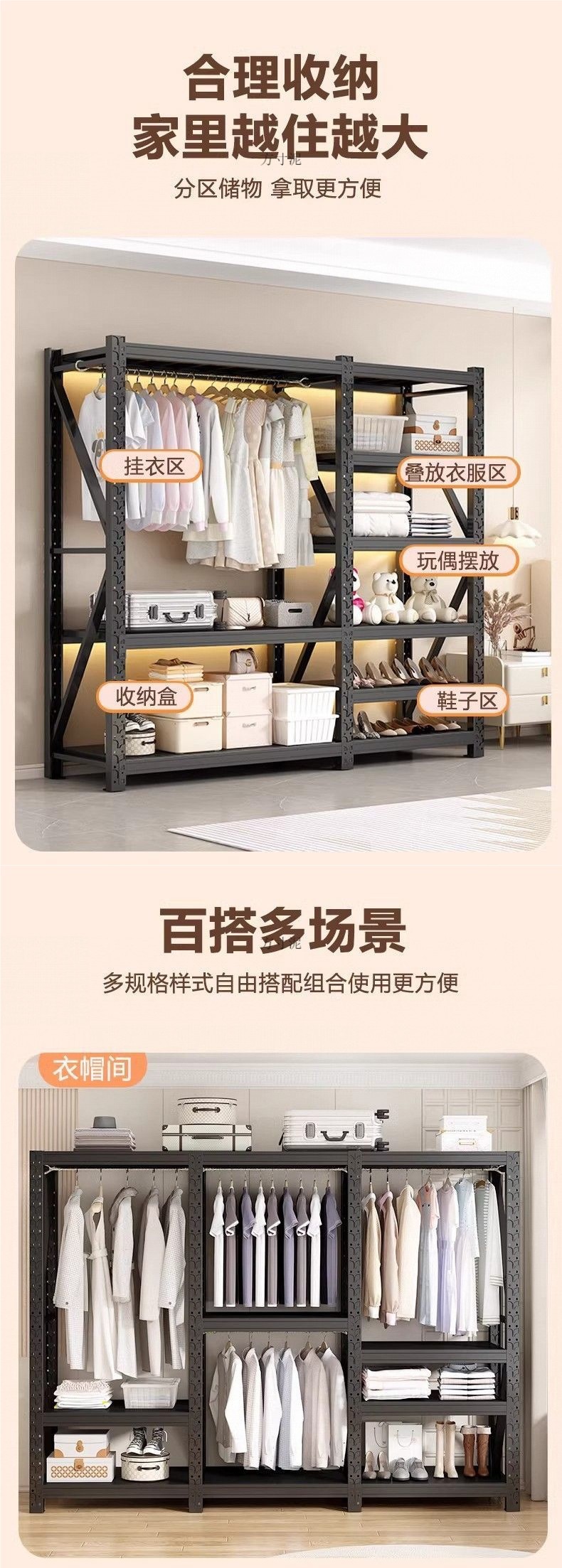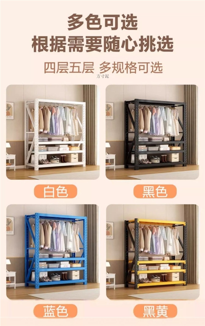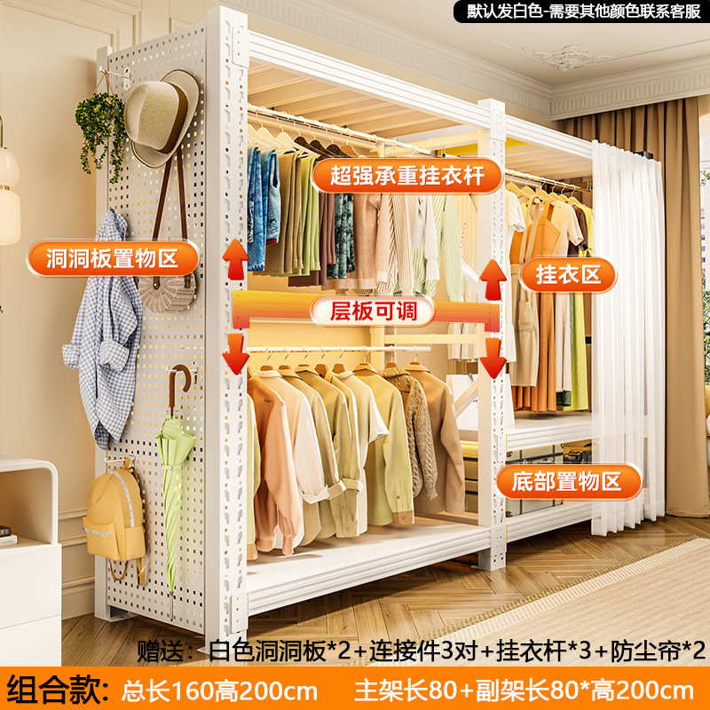 옷장 선반 간단한 옷걸이 조립 침실 옷장 보관 선반 바닥에서 천장까지 개방형 캐비닛 코너 강철 옷걸이