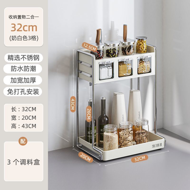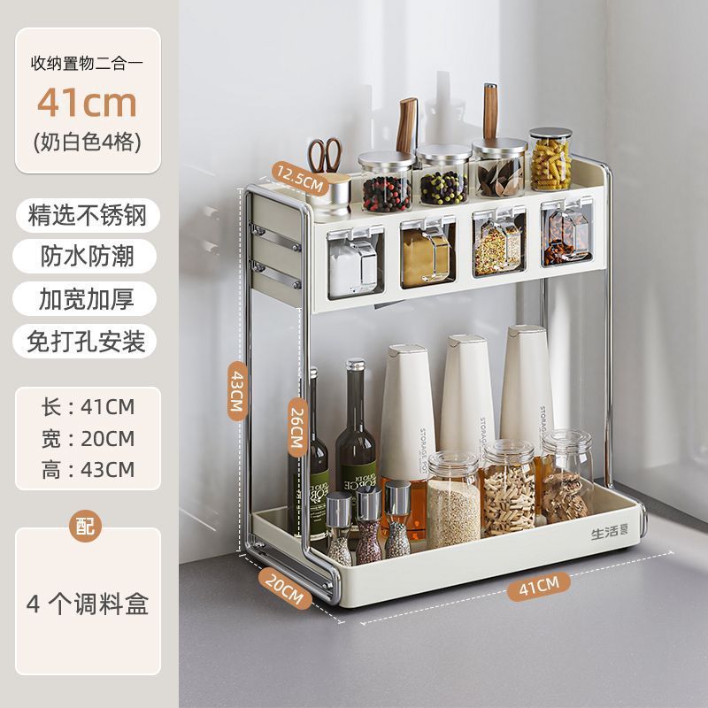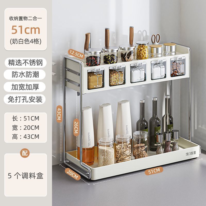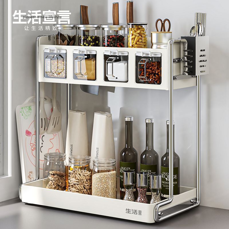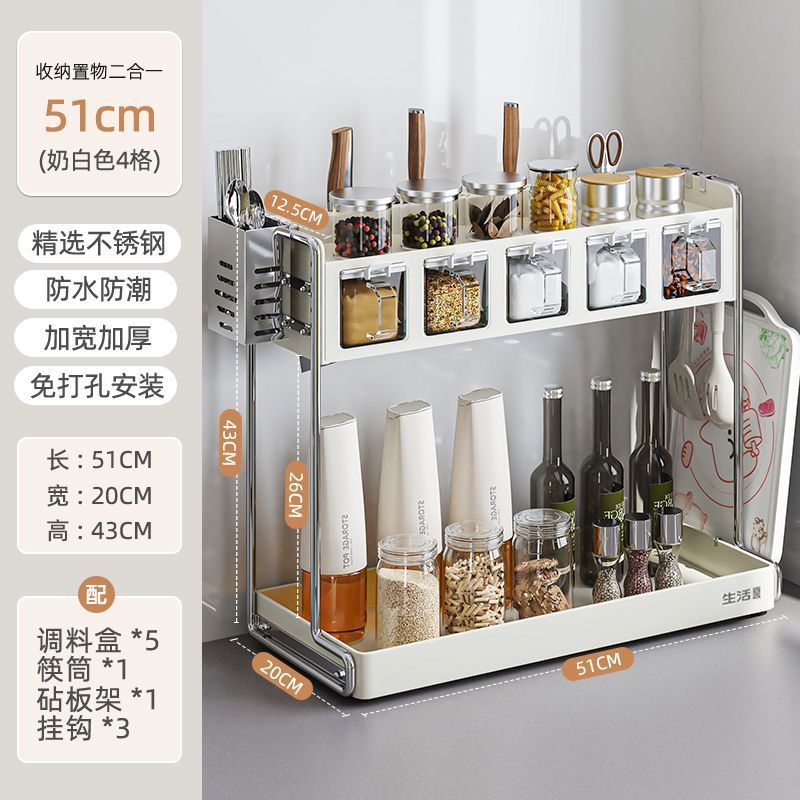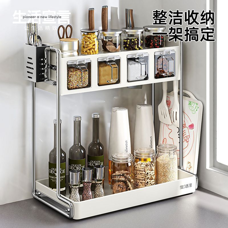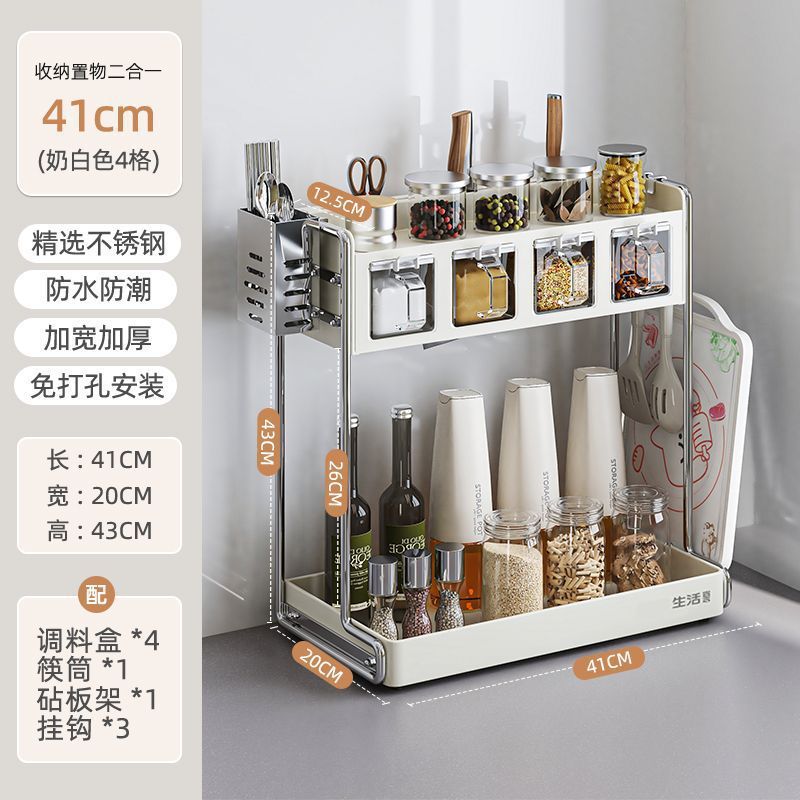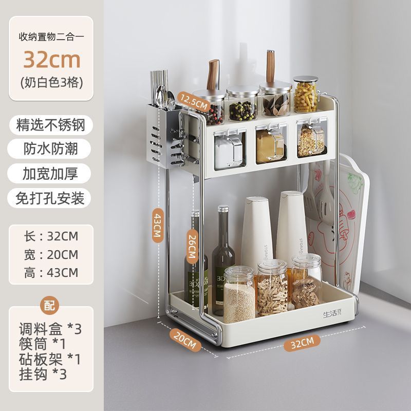 주방 다기능 칼 홀더, 젓가락 케이지, 도마 홀더, 상자 및 항아리 홀더, 가정용 조리대 통합 수납 선반, 조미료 수납 선반스토어 가기