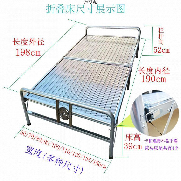 보안 잠금 장치가 있는 매우 두꺼운 이음매 없는 스테인레스 스틸 텔레스코픽 접이식 침대 점심 시간 야외 싱글 및 더블 접합 침대 자동차 침대스토어 가기