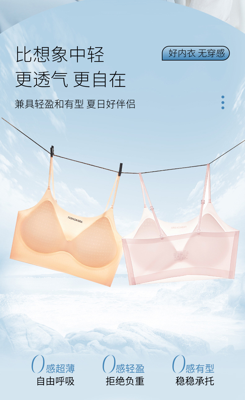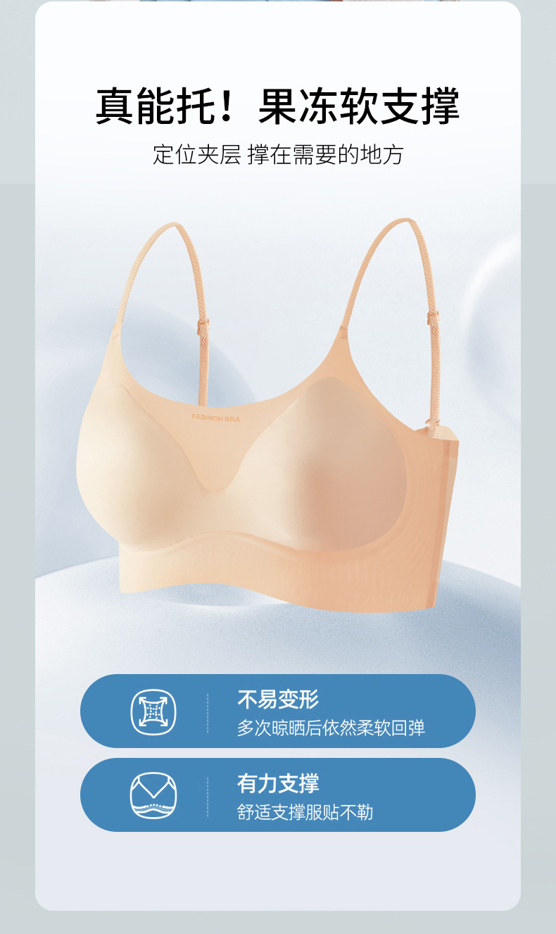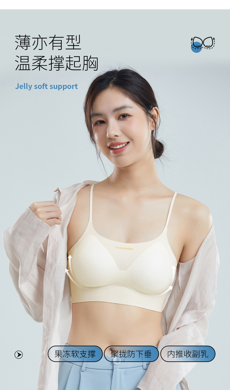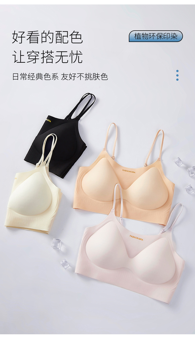 작은 가슴을 가진 여성을 위한 아이스 실크 쿨링 젤리 심리스 속옷, 푸쉬업 고정 컵, 부드러운 지지력, 통기성 스포츠 백 브라스토어 가기