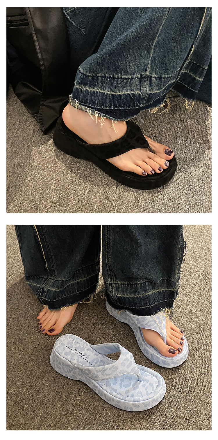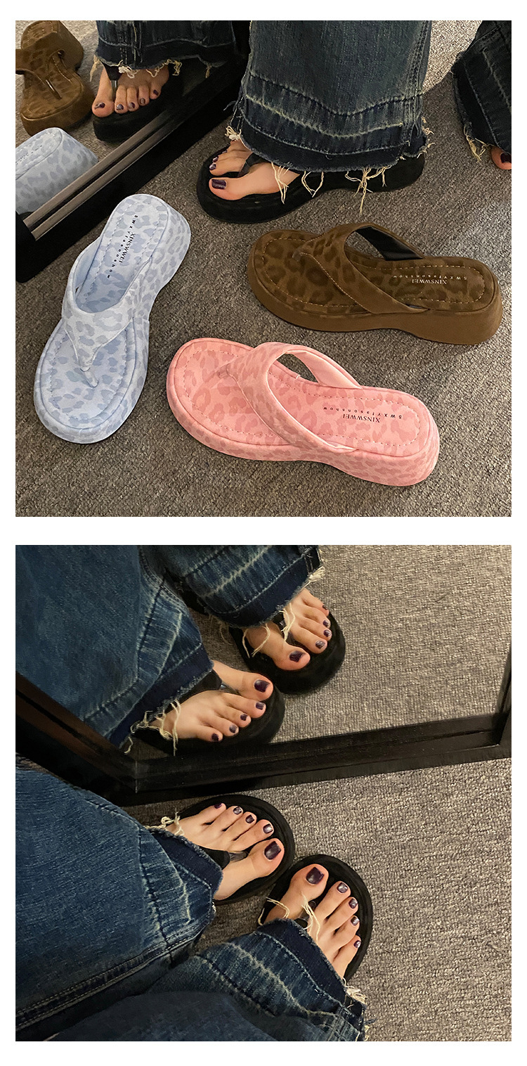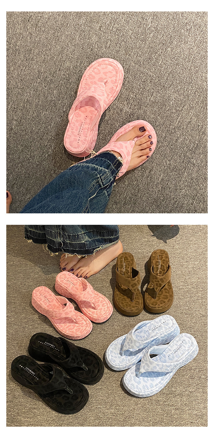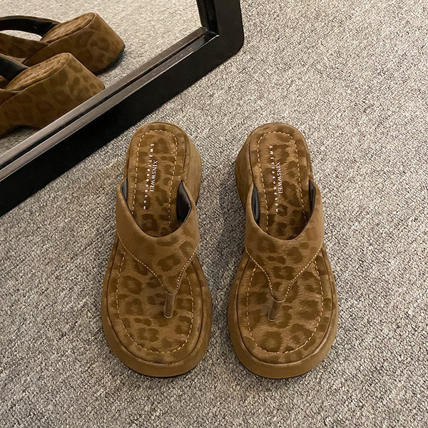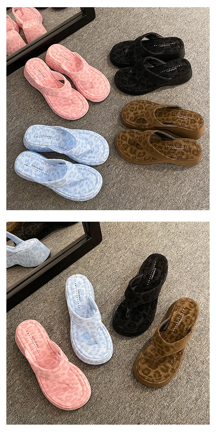 이신웨이 프렌치 핑크 레오파드 프린트 웨지 힐 슬리퍼 여성 여름용 2025 신상 요정 하이힐스토어 가기