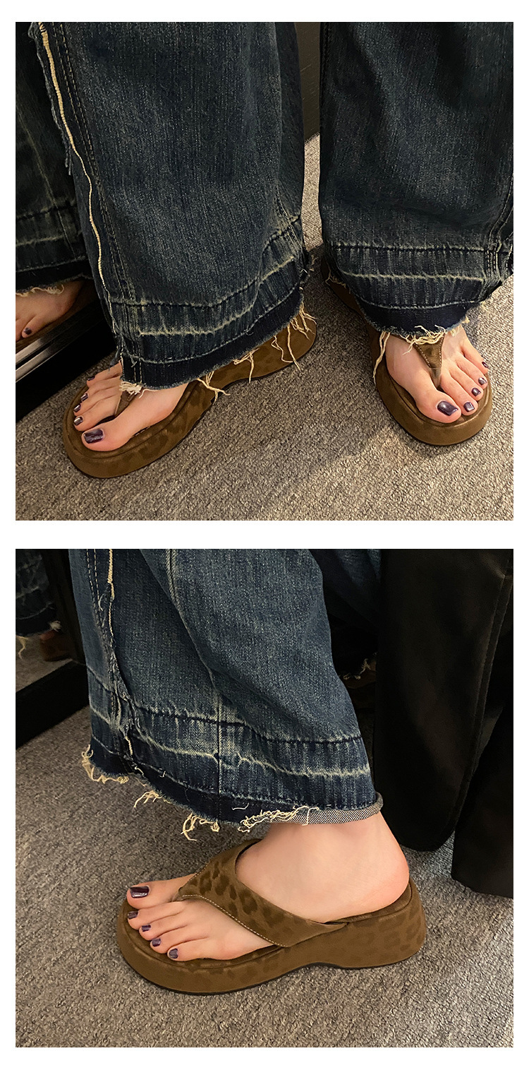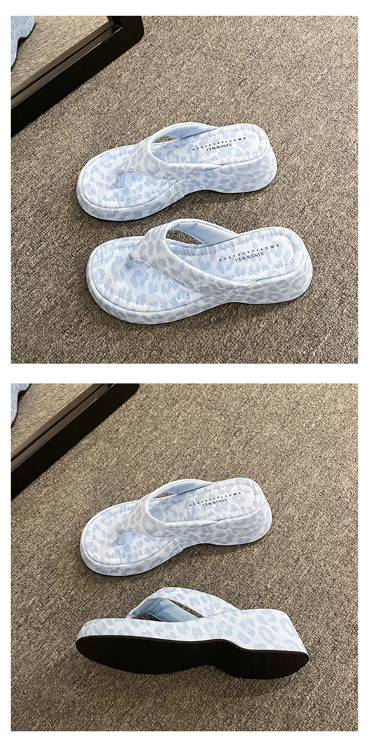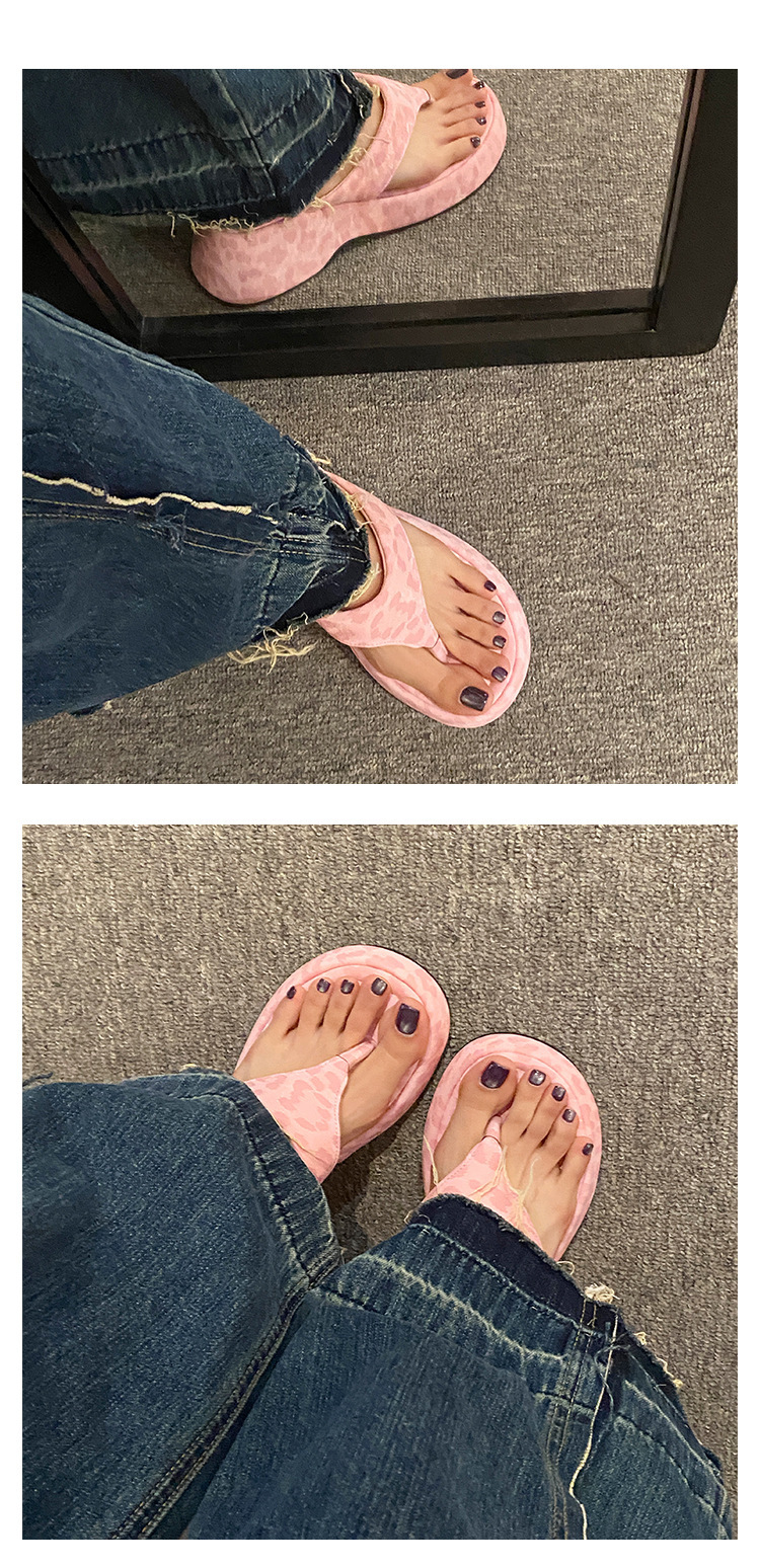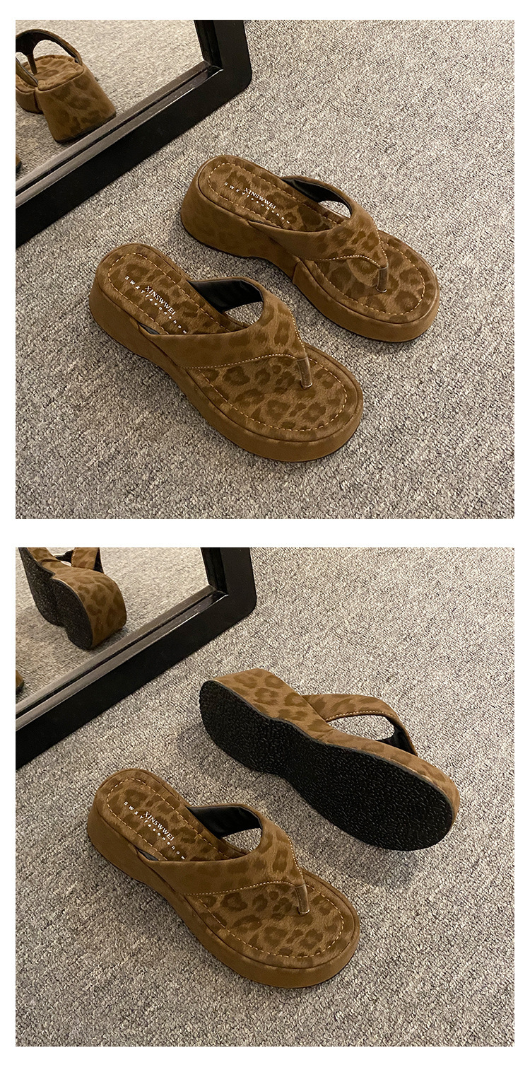이신웨이 프렌치 핑크 레오파드 프린트 웨지 힐 슬리퍼 여성 여름용 2025 신상 요정 하이힐스토어 가기
