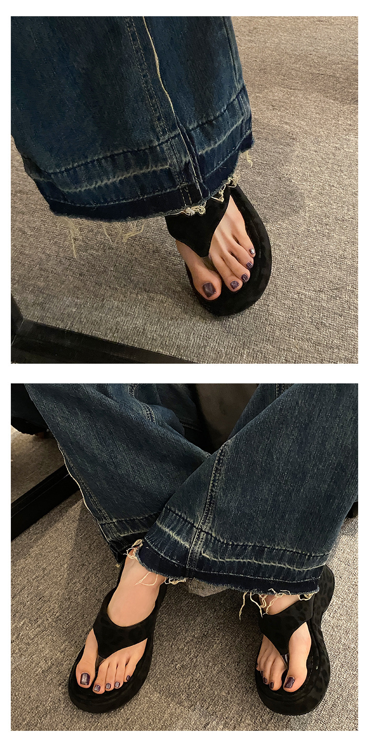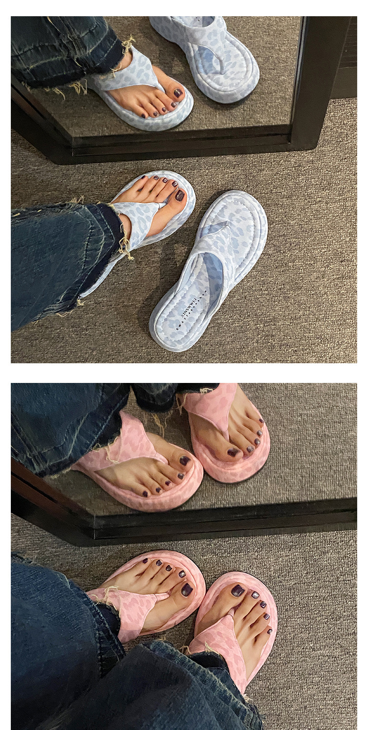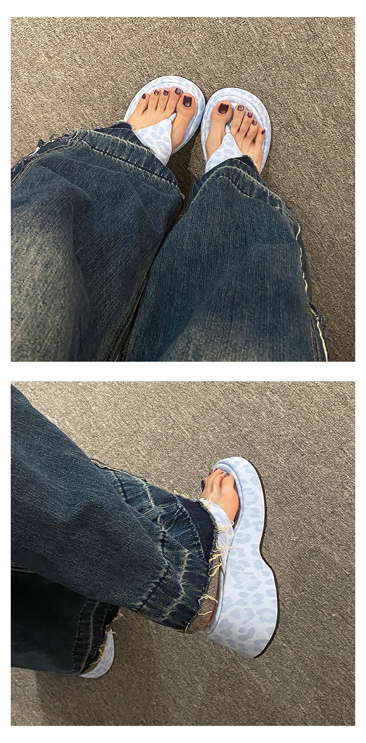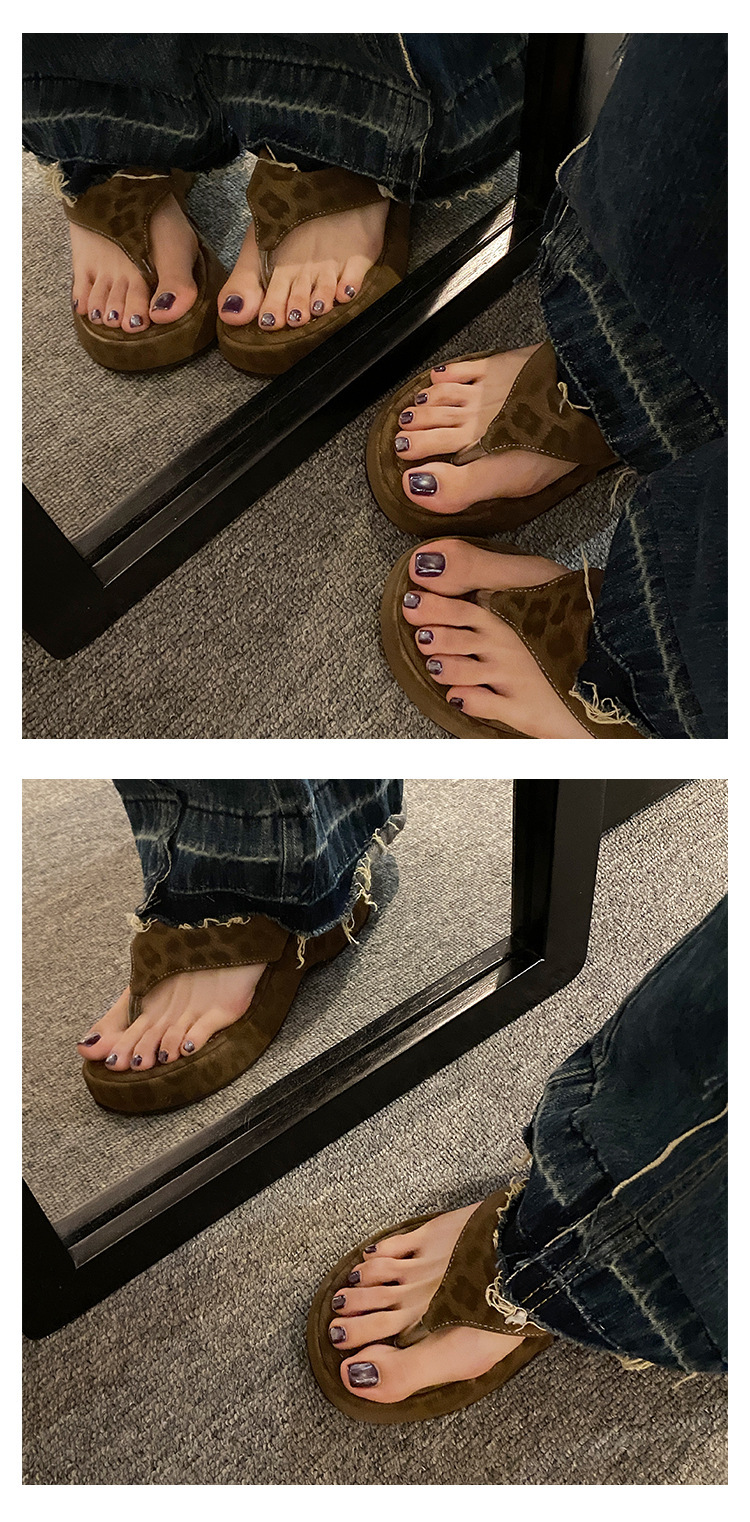 이신웨이 프렌치 핑크 레오파드 프린트 웨지 힐 슬리퍼 여성 여름용 2025 신상 요정 하이힐스토어 가기