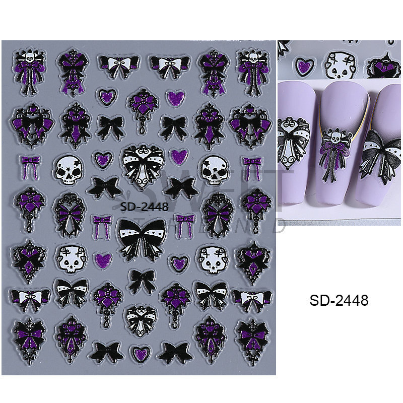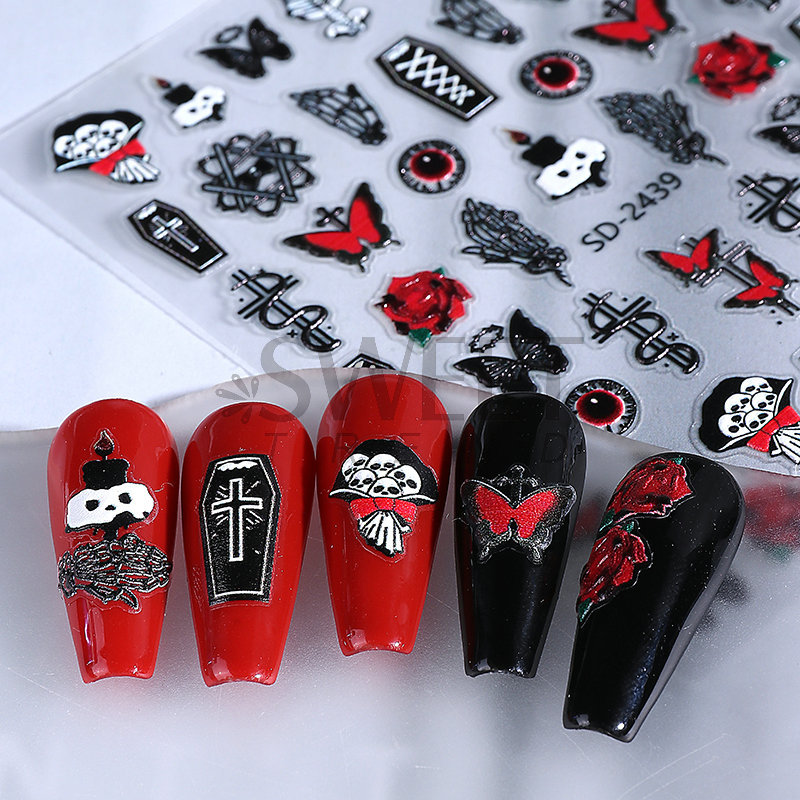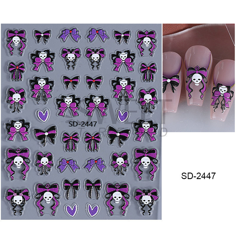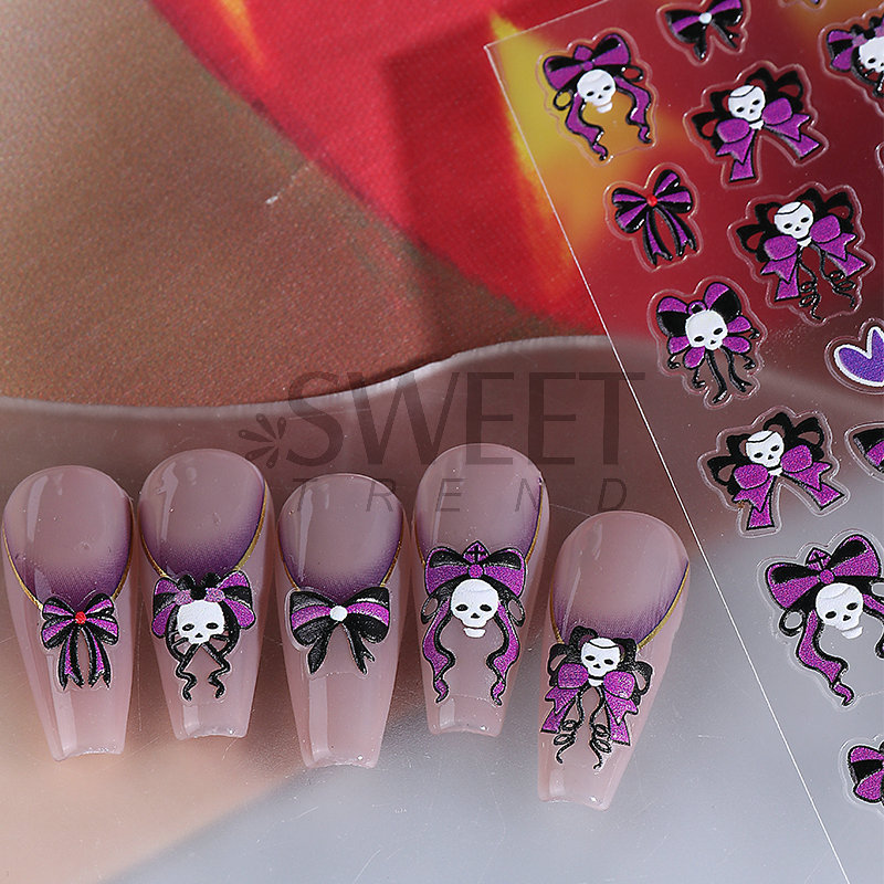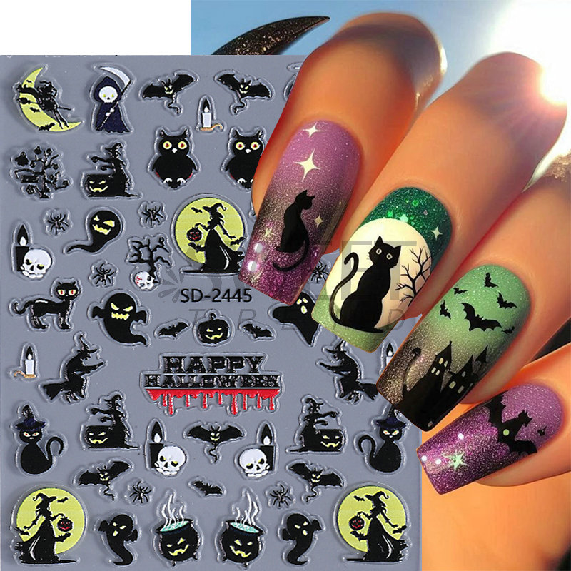새로운 할로윈 양각 네일 아트 스티커 3D 만화 해골 호박 유령 얼굴 귀여운 네일 데칼 크로스보더