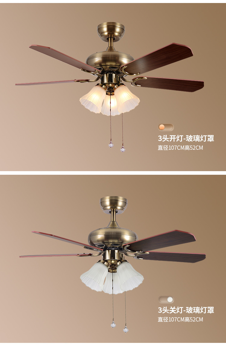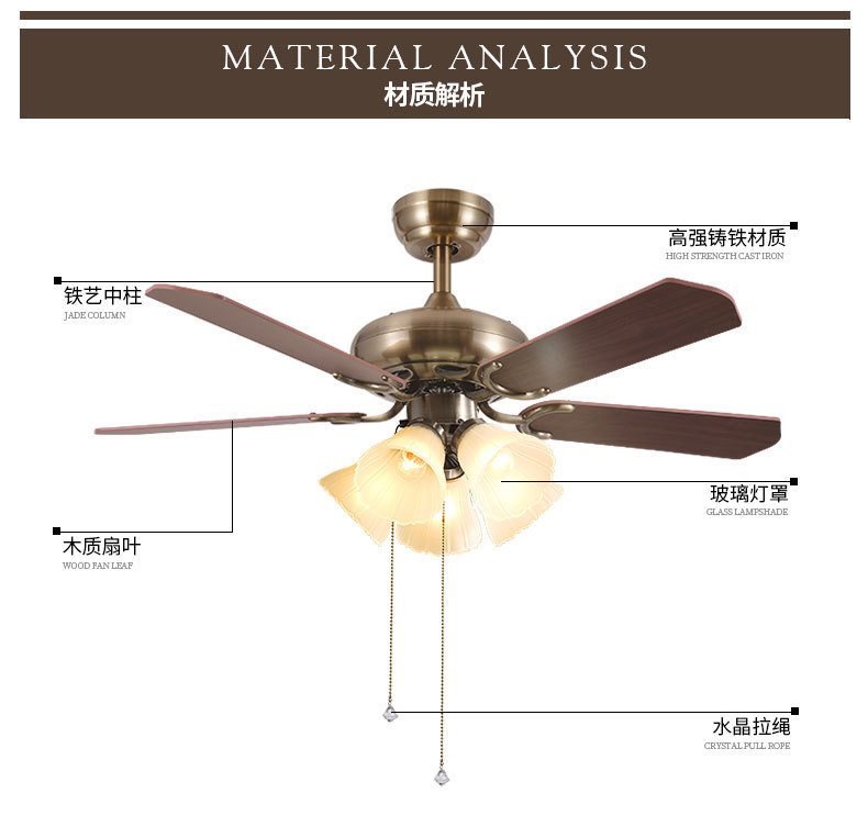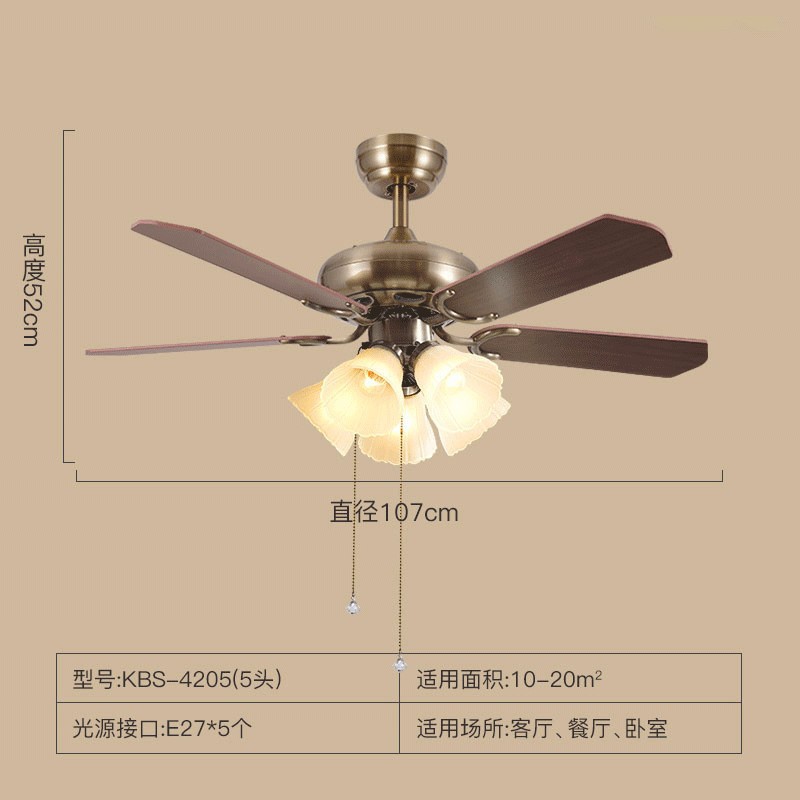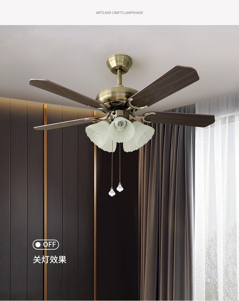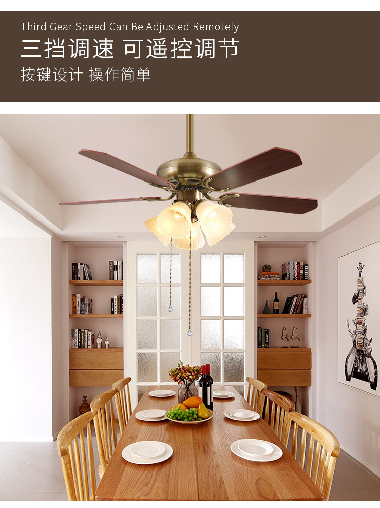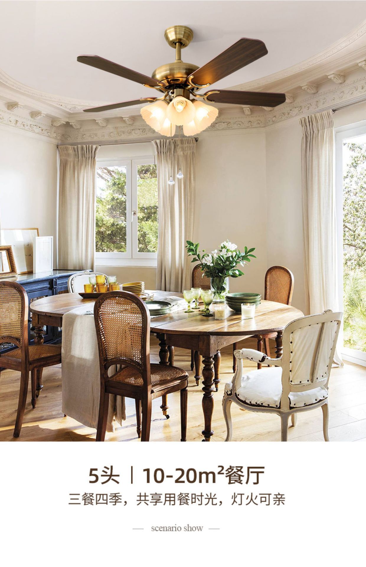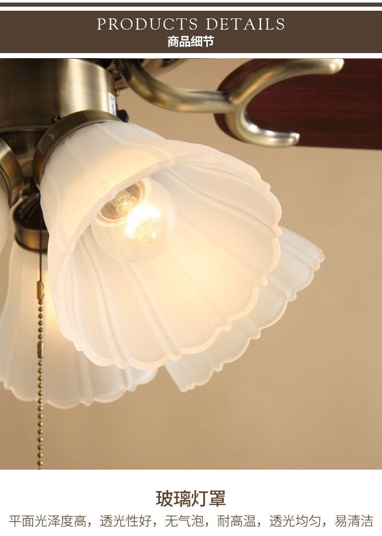 미국 팬 램프 레스토랑 천장 팬 램프 통합 간단한 천장 팬 램프 거실 침실 유리 복고풍 램프