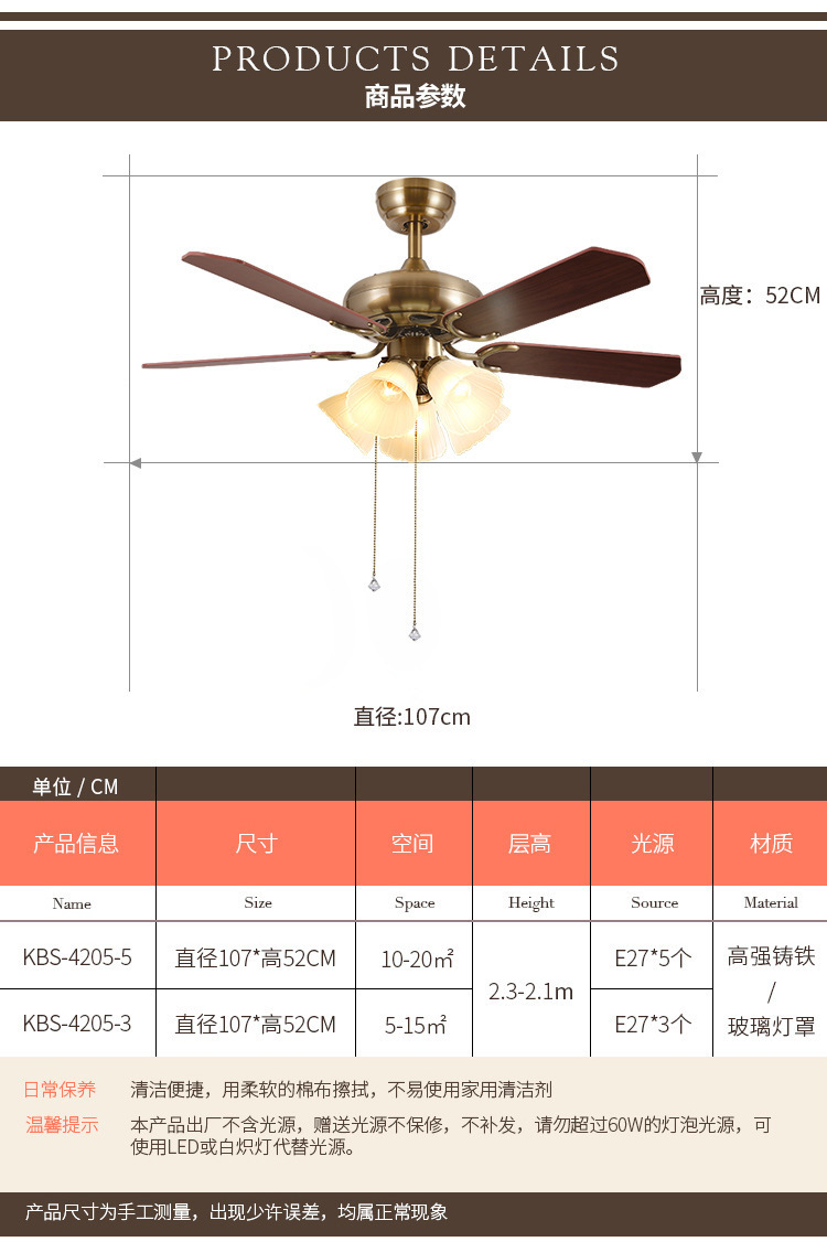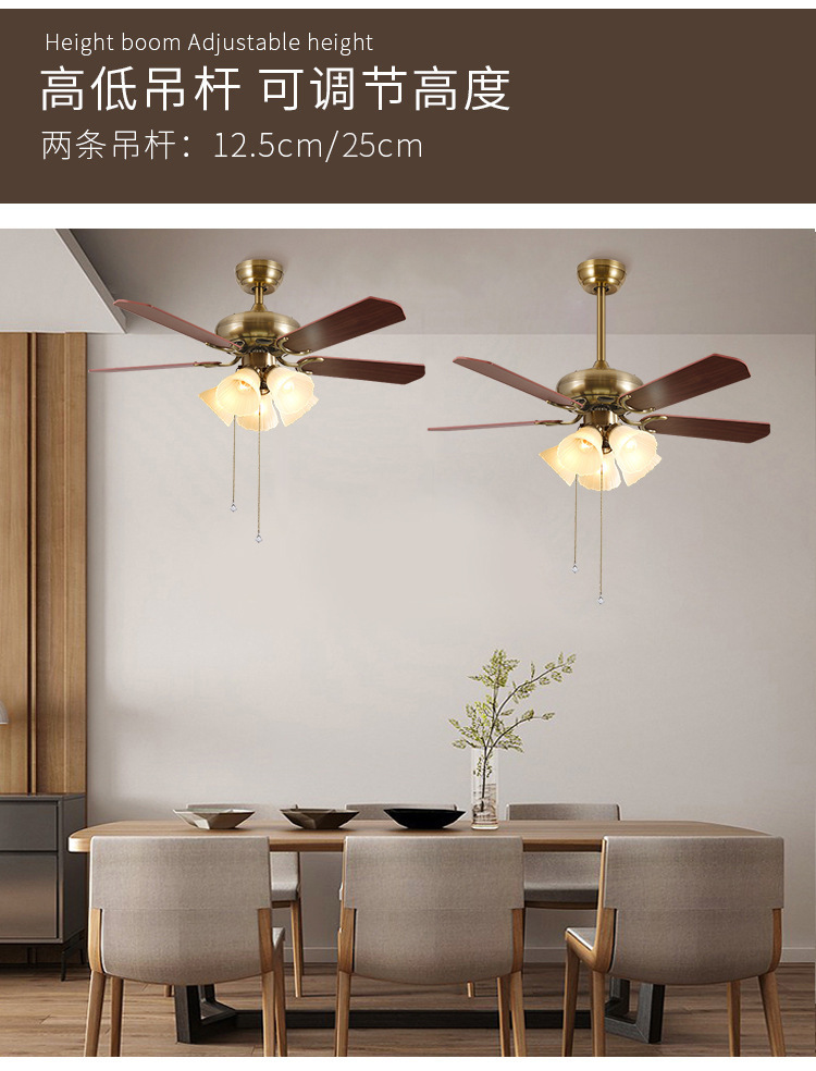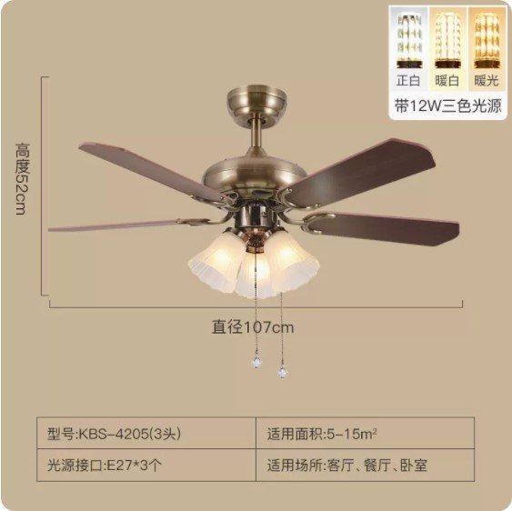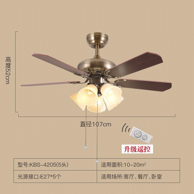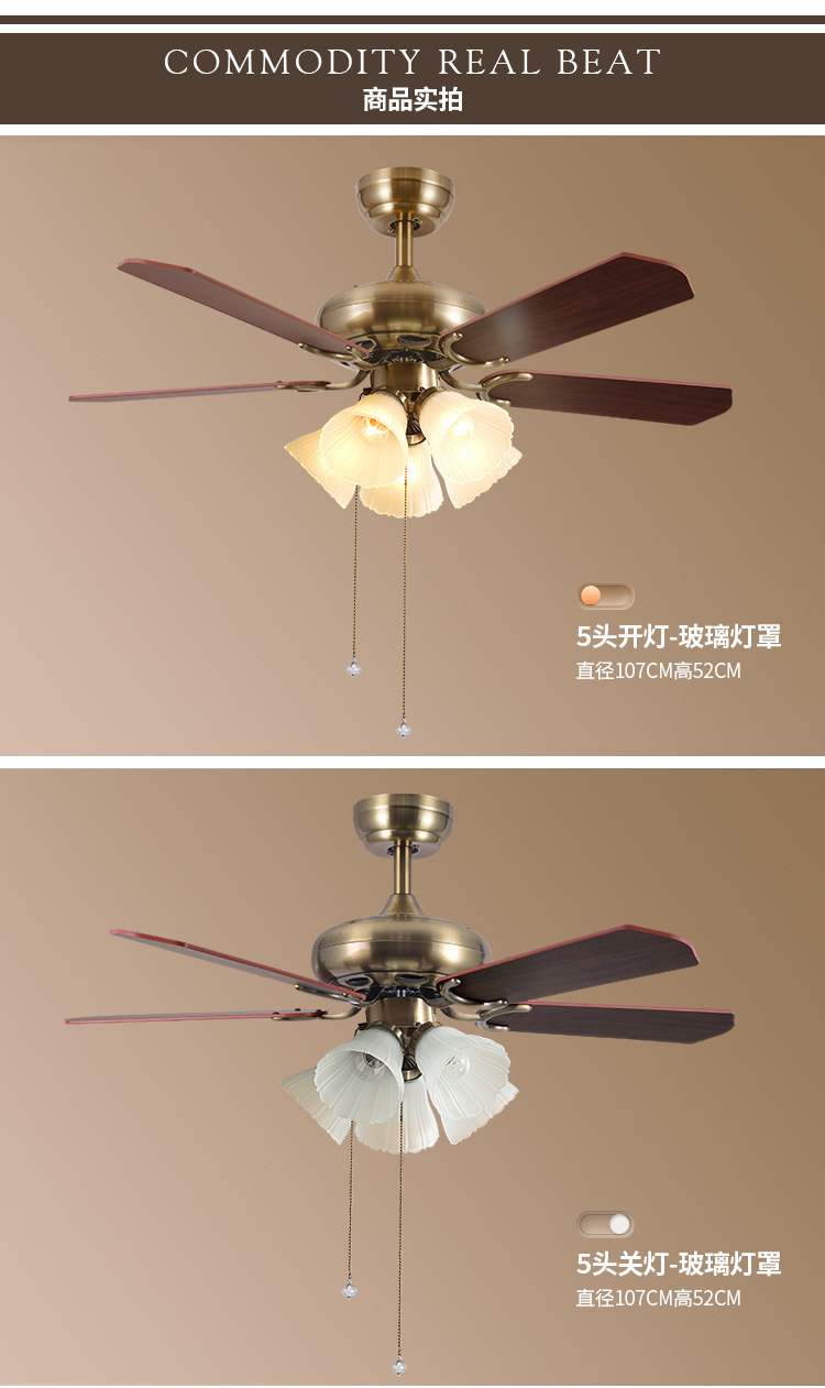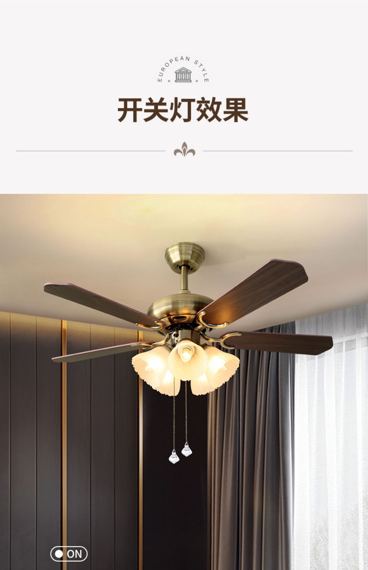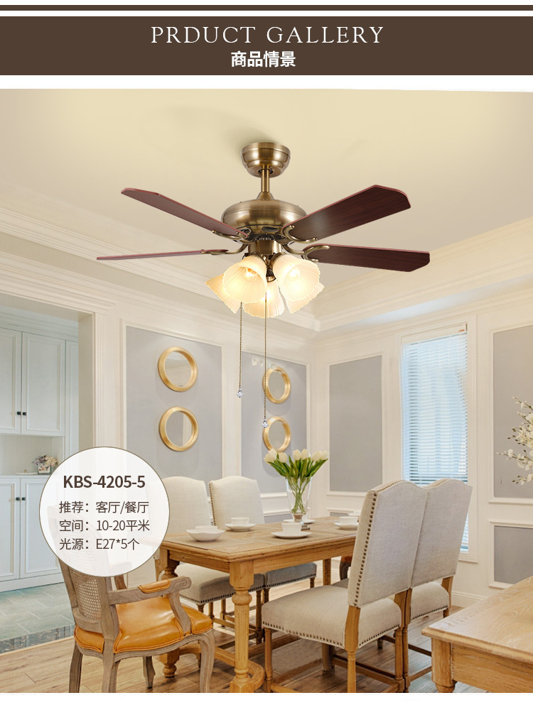 미국 팬 램프 레스토랑 천장 팬 램프 통합 간단한 천장 팬 램프 거실 침실 유리 복고풍 램프