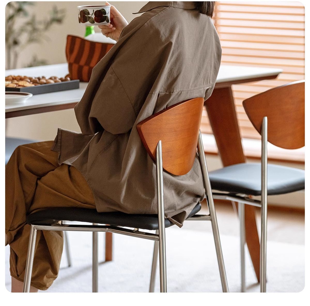 플라잉 버드 의자 북유럽 복고풍 식당 의자 와비사비 스타일 중세 스타일 홈 라이트 럭셔리 간단한 단단한 나무 철 거실 등받이스토어 가기