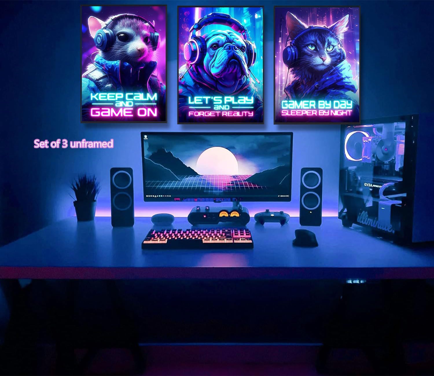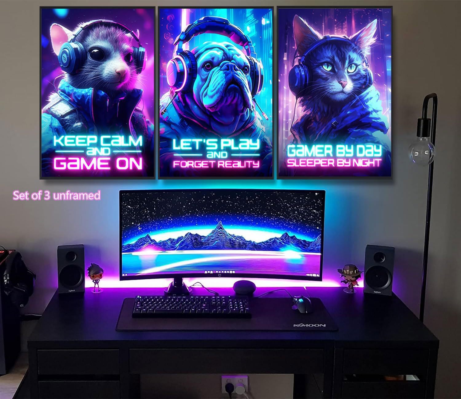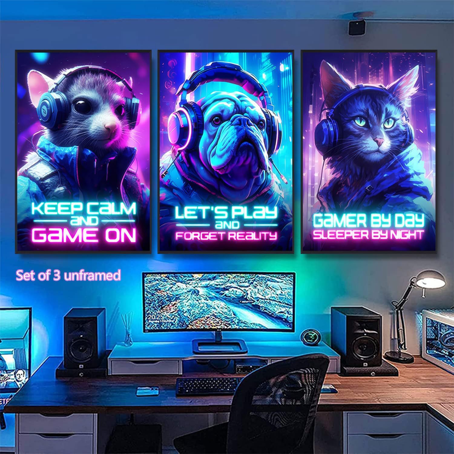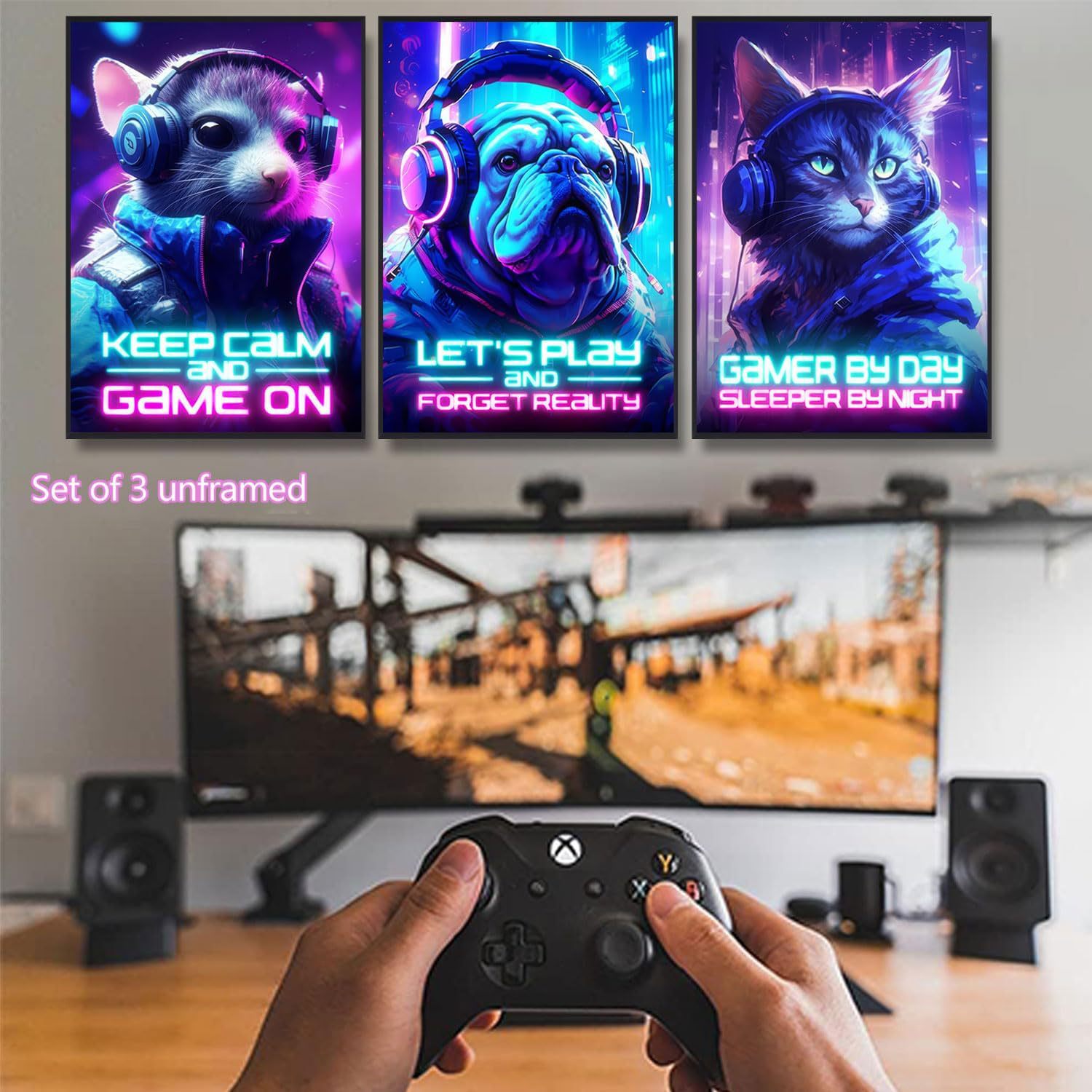 HD 장식 그림 삼중 멋진 게임 벽 예술 복고풍 게임 예술 게임 룸 침실 벽 유화