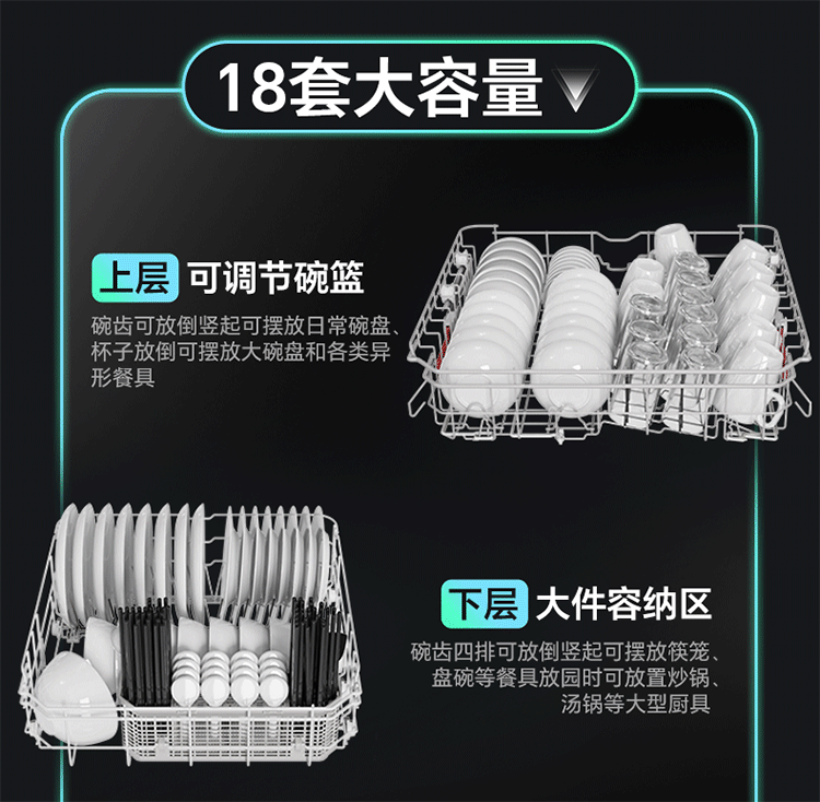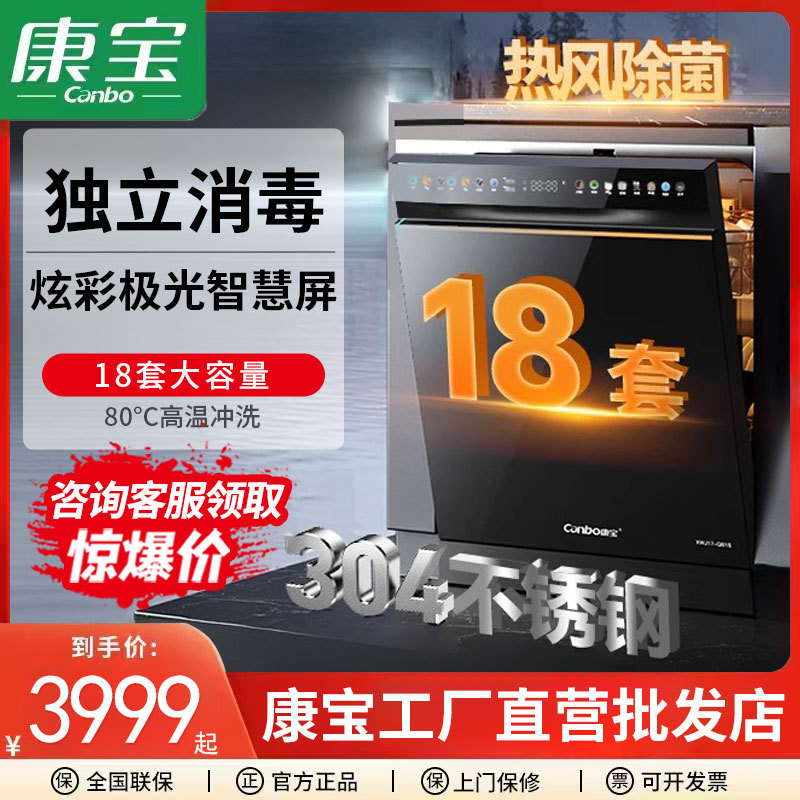 Kangbao 18 세트 돌고래 내장형 식기 세척기 소형 가정용 식기 세척 및 소독 올인원 기계 전체 304 스테인레스 스틸