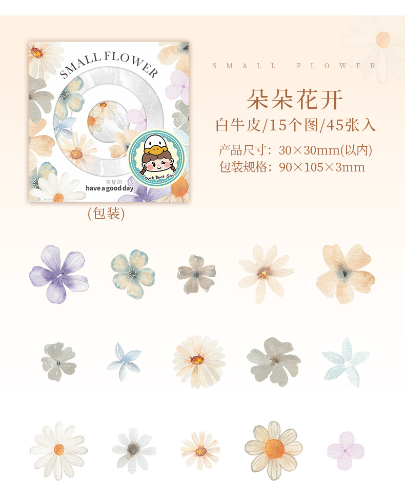작은 꽃 조경 테마 PET 특수 모양의 스티커 귀여운 소녀 하트 꽃 소재 콜라주 핸드북 장식 diy스토어 가기