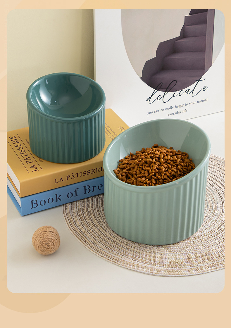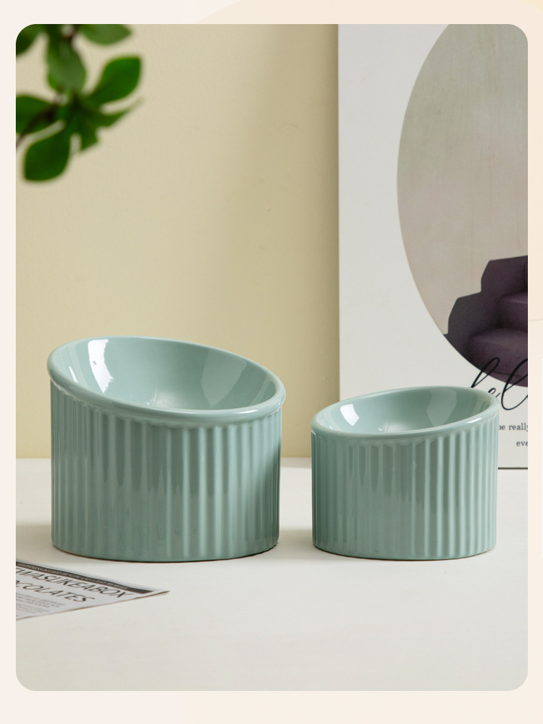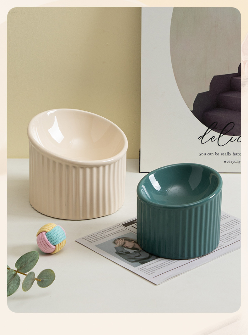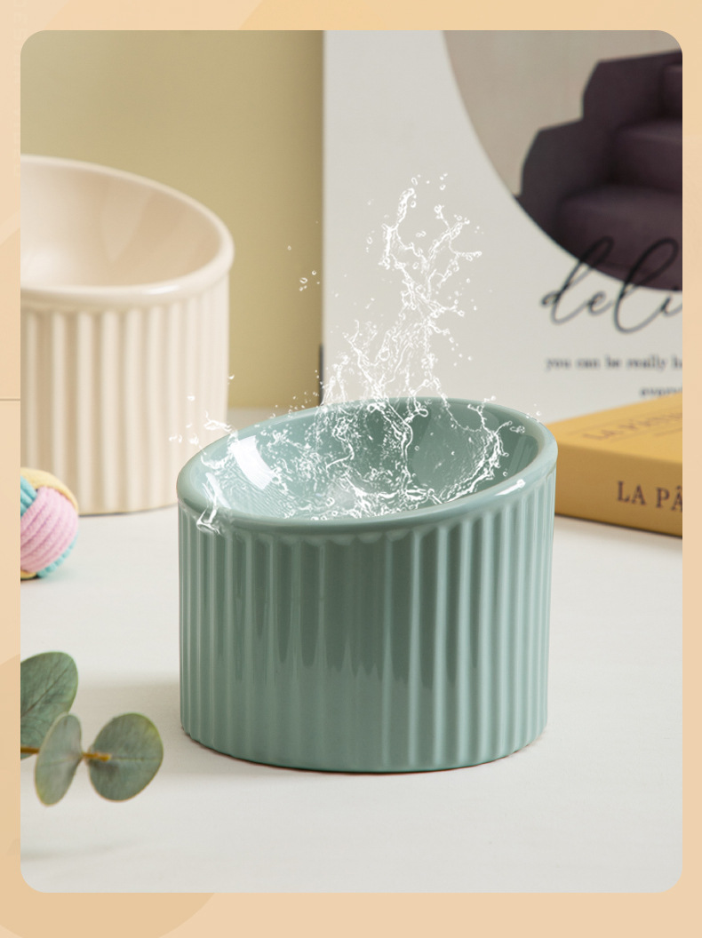 경추를 보호하는 세라믹 고양이 밥그릇, 경사진 개그릇, 물그릇, 고양이 밥그릇을 갖춘 줄무늬 컬러풀한 애완동물 그릇을 국경을 넘어 특별히 공급합니다.스토어 가기