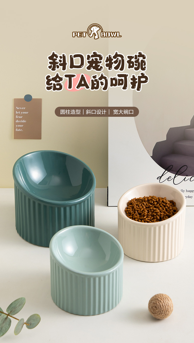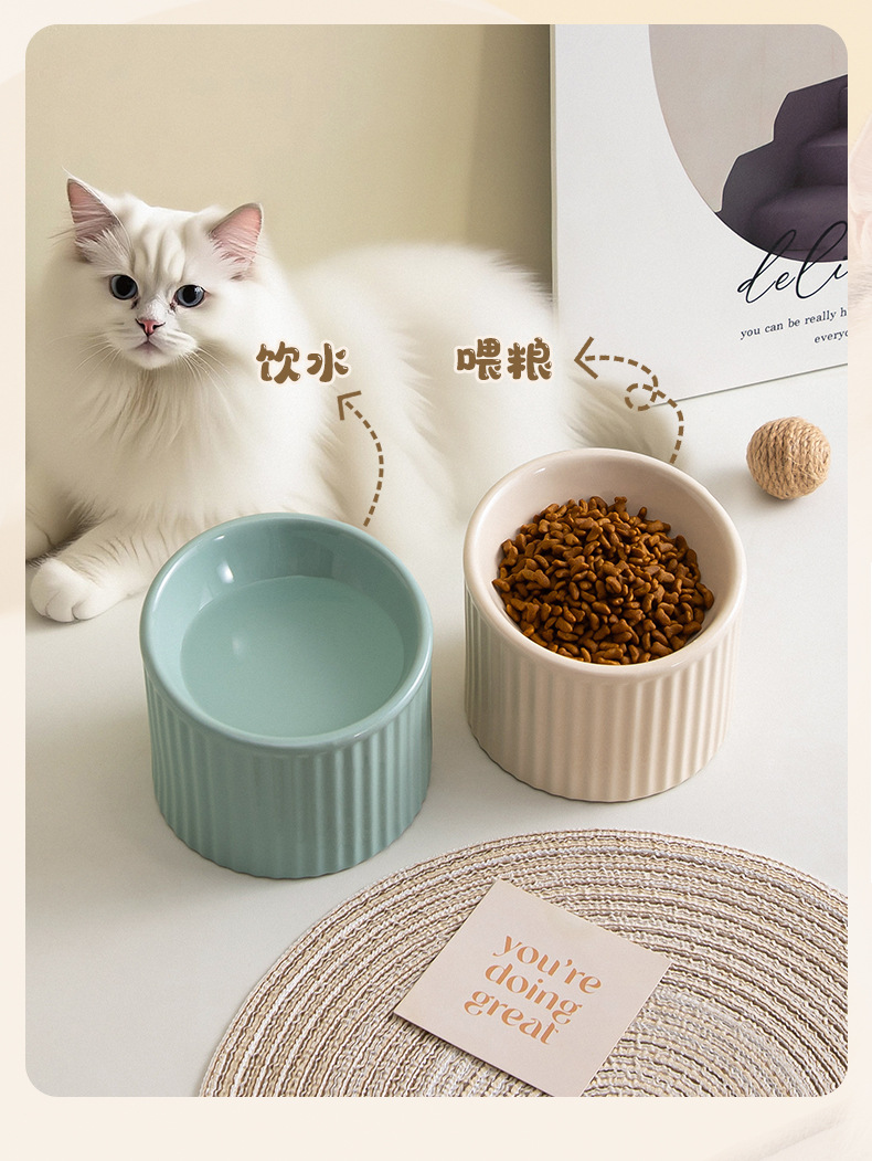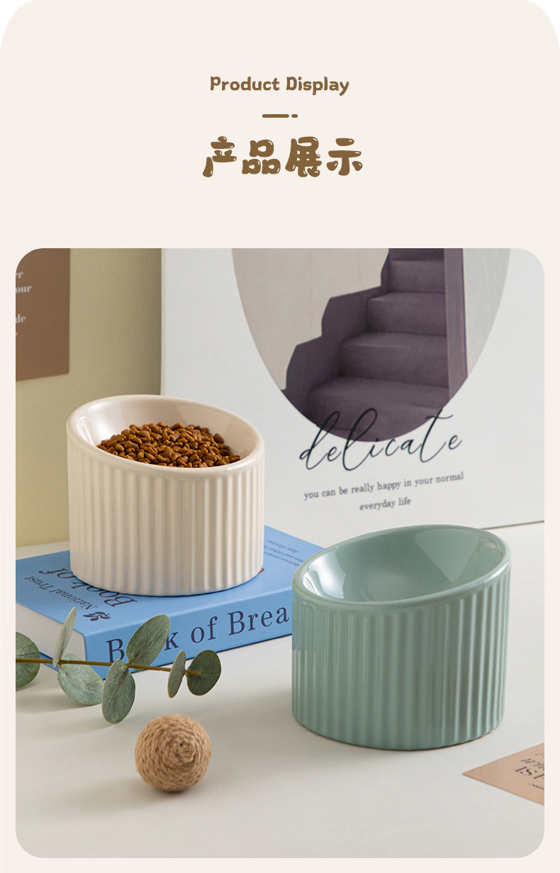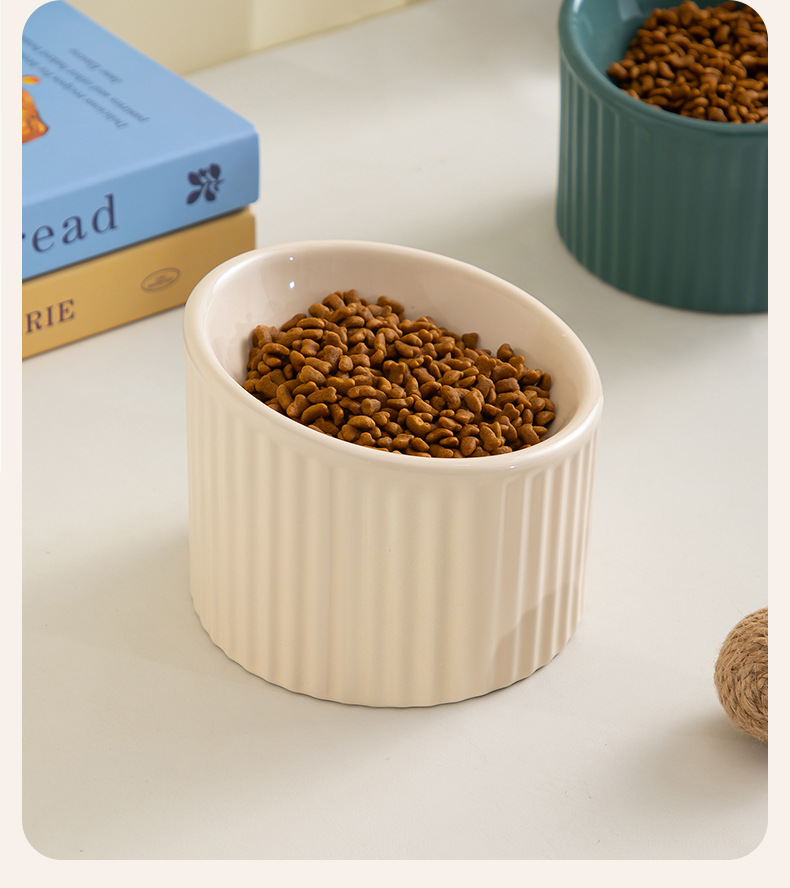 경추를 보호하는 세라믹 고양이 밥그릇, 경사진 개그릇, 물그릇, 고양이 밥그릇을 갖춘 줄무늬 컬러풀한 애완동물 그릇을 국경을 넘어 특별히 공급합니다.스토어 가기