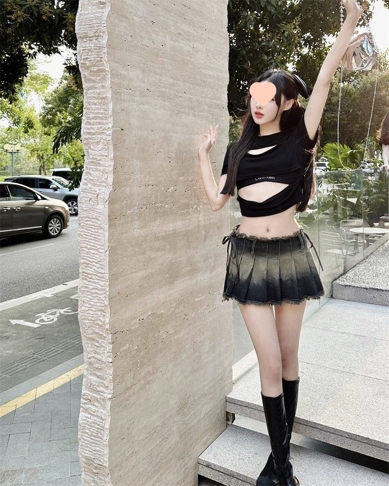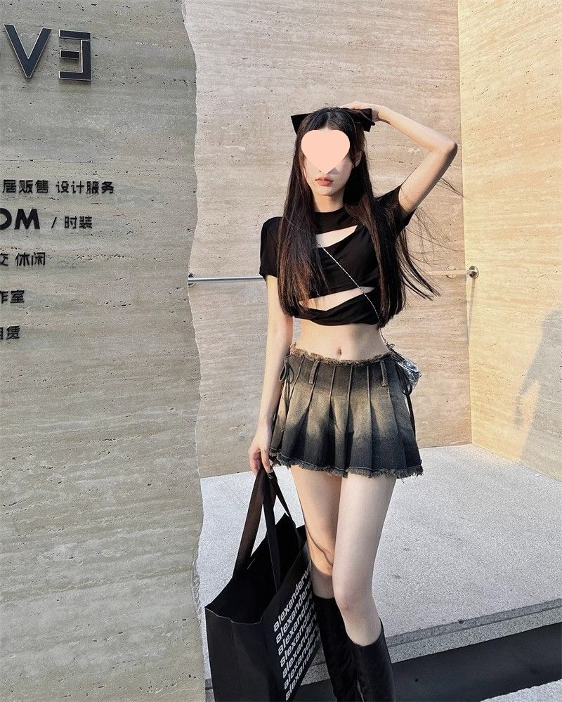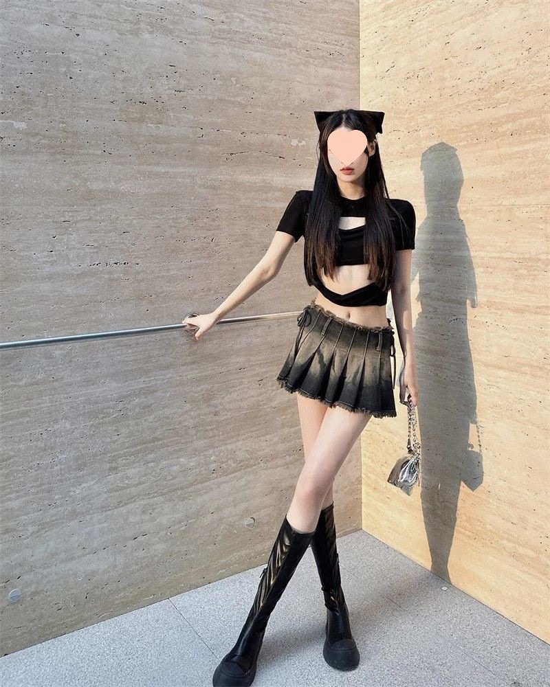 핫걸의 달콤한 스트리트 데님 미니 스커트 여성용 다용도 하이 웨이스트 슬리밍 디자인 불규칙한 플리츠 스커트
