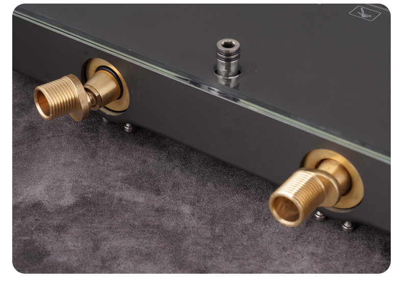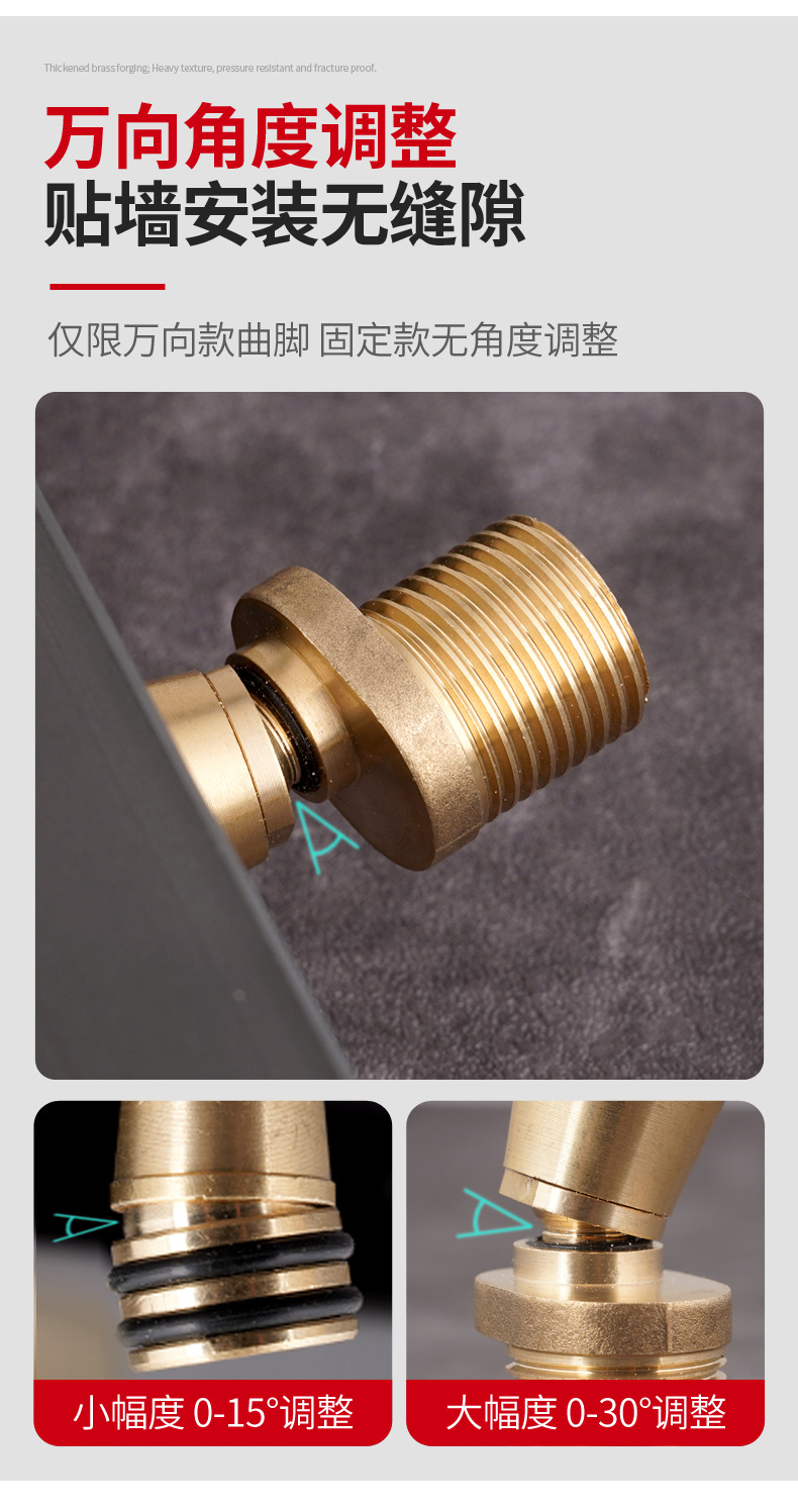 샤워기용 수납 랙을 삽입하고 샤워기의 긴 곡선형 수도꼭지를 밀봉 링과 범용 곡선형 각도 조인트를 사용하여 이심형으로 만듭니다.